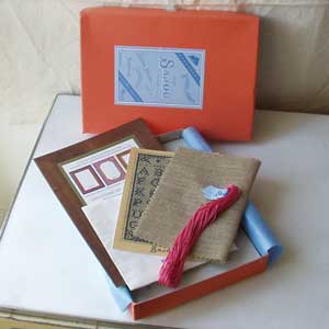 Reeditions d'albums anciens Album Miniature n° 1(ミニチュア版 アンティークのクロスステッチ サンプラー型紙No1)の2番目の型紙を使ったサンプラーキット。 北フランスで作られる昔ながらのリネン地(たて21cmX横14cm)、針、刺繍糸、ポストカードの型紙、枠紙、縫い付けられるフックが専用の箱に入っています。 作り方はPetit Mignon Grand Beau特別訳をつけますので、ご安心ください。 Maison Sajouって何?>> □サイズ:出来上がりサイズ15cmX10.5cm 枠のカード21cmX15cm □重さ:140g(梱包材別) □単価:3,960円 □数量: 1 2