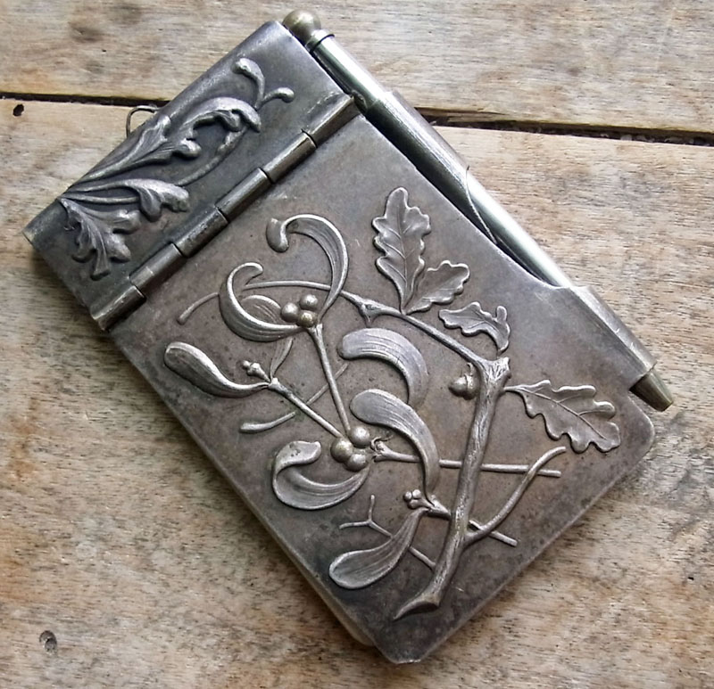 【商品番号】A130145 【商品名】19世紀後期 アールヌーボー シルバープレート製 舞踏会用 メモパッドカバー&ペン