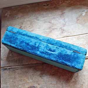 古い宝石箱。 フレームは木製で、ベルベットが表側に張り付けてあります。 中はシルク製のクッションが敷き詰められています。古いものなので、多少の汚れ、傷がありますが、使用には問題ありません。 鍵はありません。