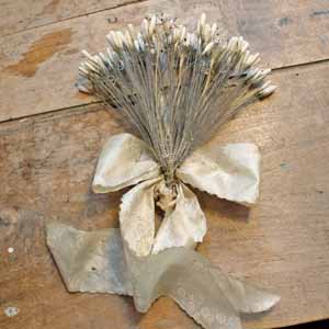 非常に珍しい結婚式で使われたブーケ。 多分茎の部分はシルバーではないかと思います。リボンはシルク製だと思われますが、古いものなのでぽろぽろと布が落ちます。