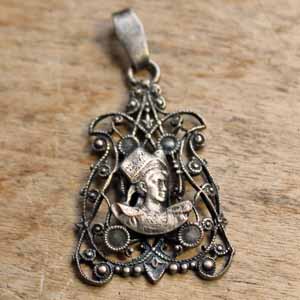 古いブルターニュ地方のヘッドドレスをモチーフにしたペンダントヘッド。 古いものなので多少金属の変色があります。