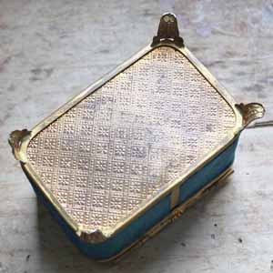 100年ぐらい前の古いアクセサリーボックス。 蓋はガラス製、本体は金属にベルベットが張ってあります。内側はシルクが張ってあります。古いものなので多少の傷、汚れがありますが、ガラスにダメージはありません。