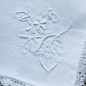 【商品番号】A190075 【商品名】19世紀後期〜20世紀初期 コットンリネン製ハンカチ 手刺繍、ハンドメイドレース付き