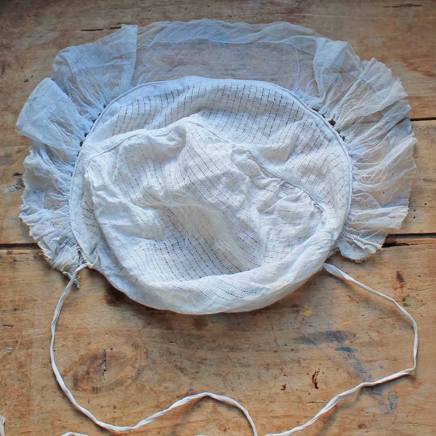 100年ぐらい前の古いボネ。大人用です。古いものなので多少のシミ、汚れがありますが、切れはありません。