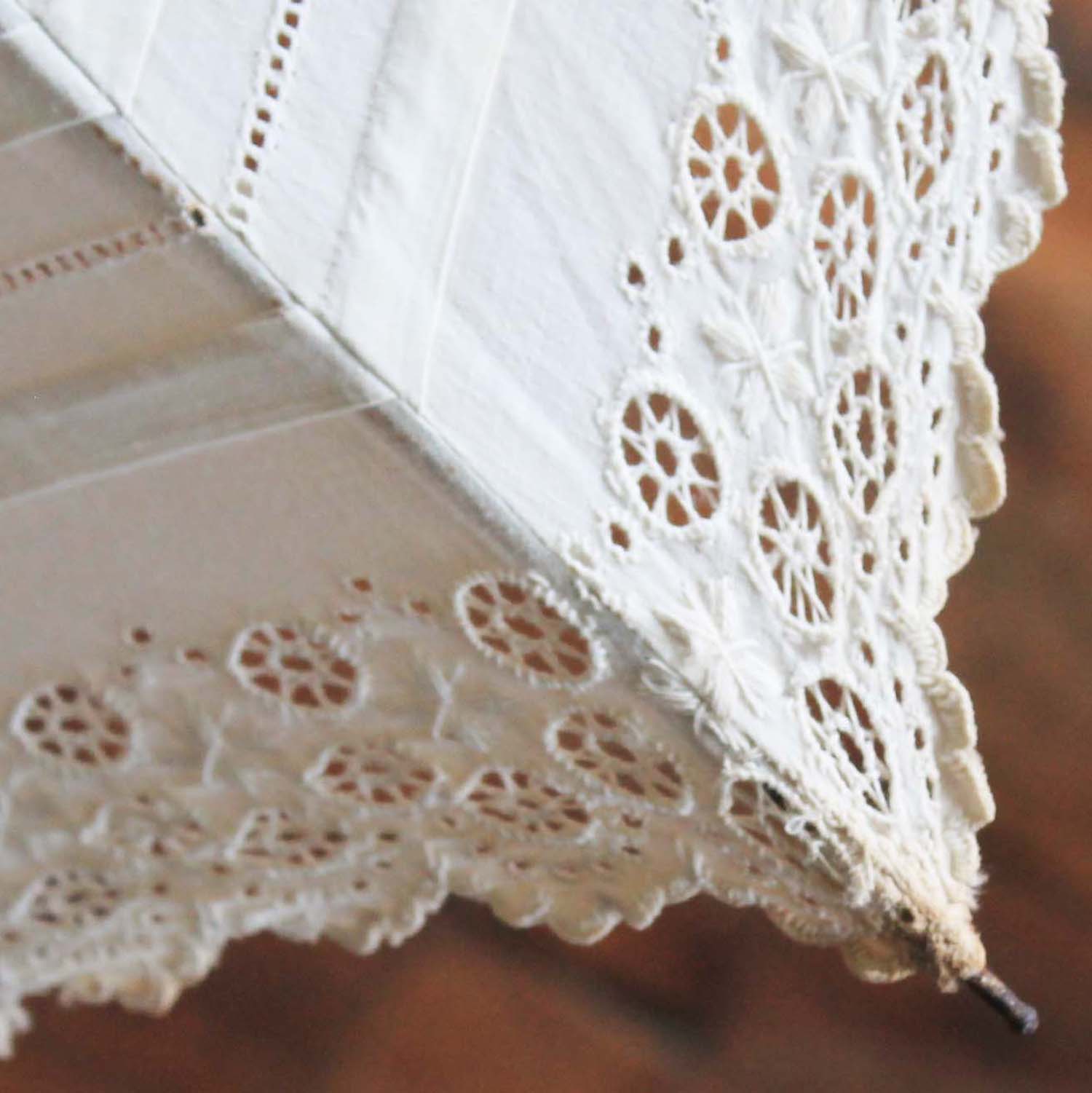 【商品番号】A250067 【商品名】19世紀後期~20世紀初期 コットン製日傘 手刺イギリス刺繍