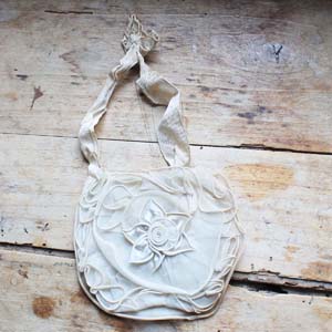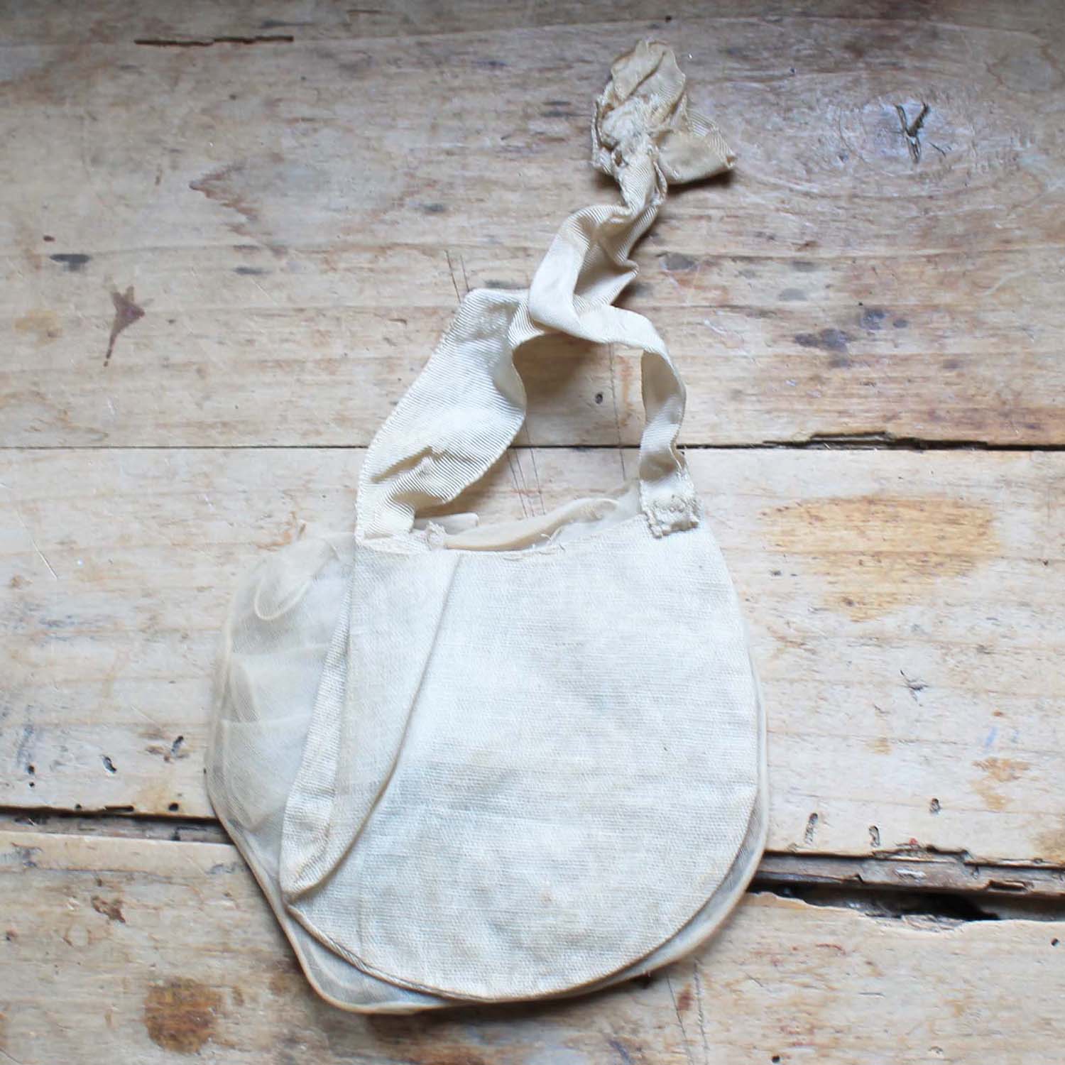 多分、洗礼の時に使われたと思われる、赤ちゃん用のポシェット。古いものなので多少のシミ、汚れがあります。