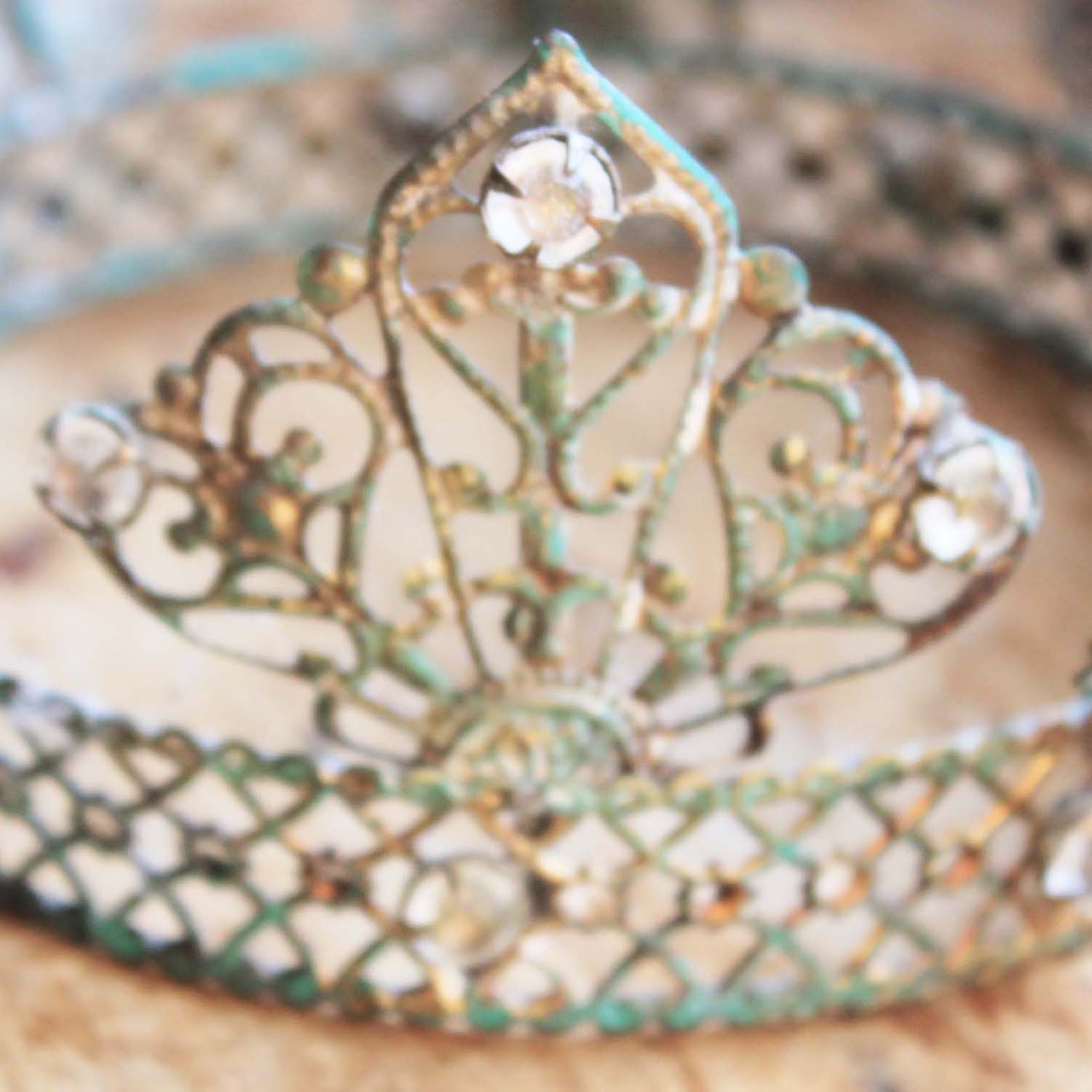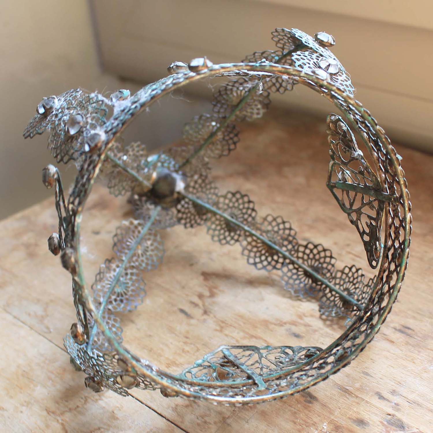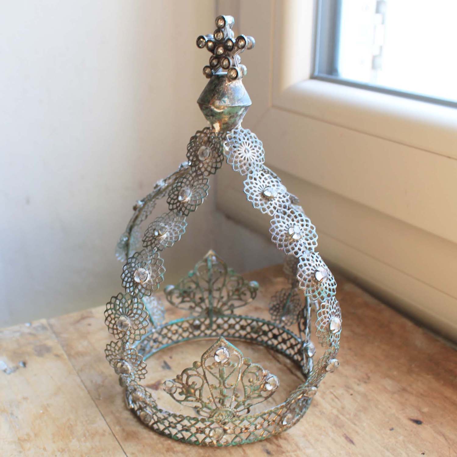 100年ぐらい前の古いマリア様像用の王冠。大き目のものになります。古いものなので金属の緑化、汚れがあります。