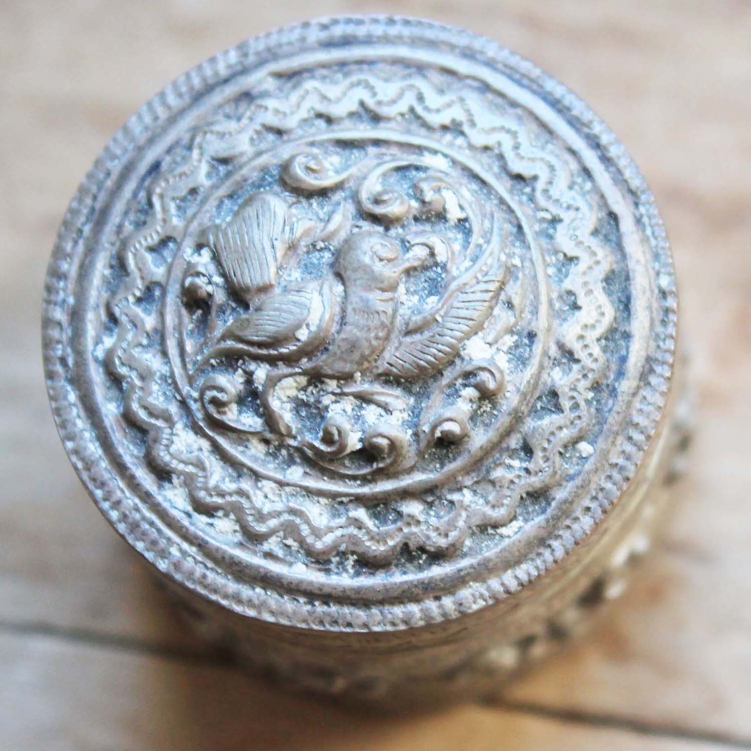古い銀製のピルケース。 鳥のモチーフです。古いものなので多少の傷、汚れがあります。