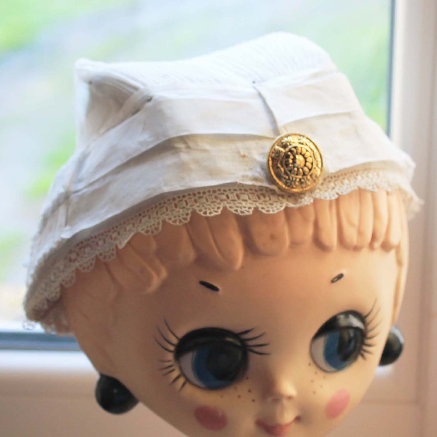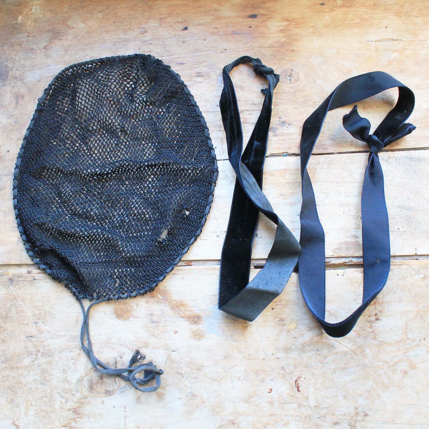 100年ぐらい前の古い民族衣装用のボネ。ブルターニュ地方のものです。専用の木箱付き。 その他髪の毛をまとめるネットやベルベット製のリボン2個もついています。古いものなので多少の傷、汚れがあります。