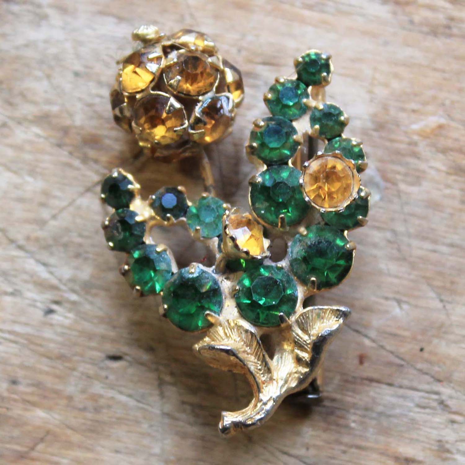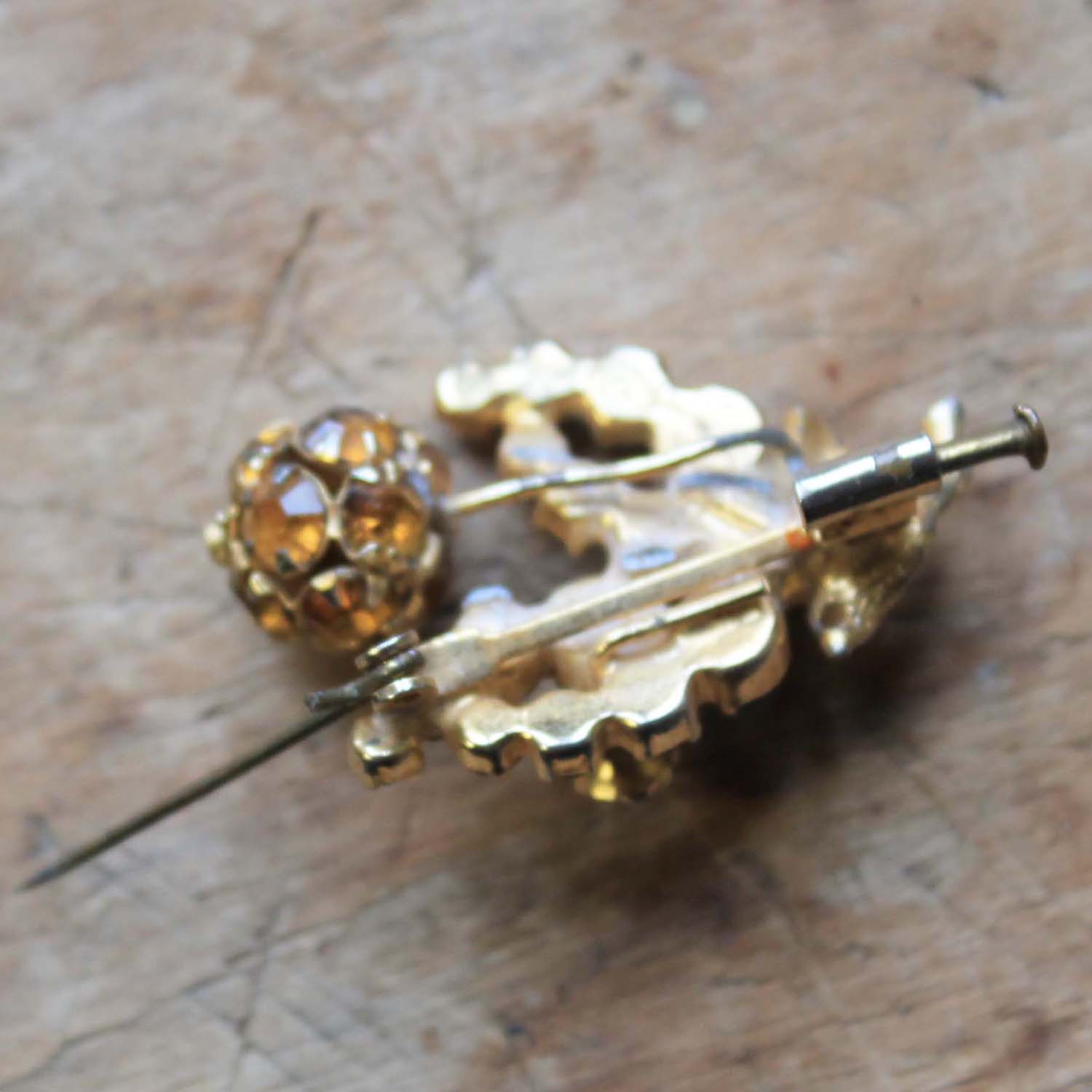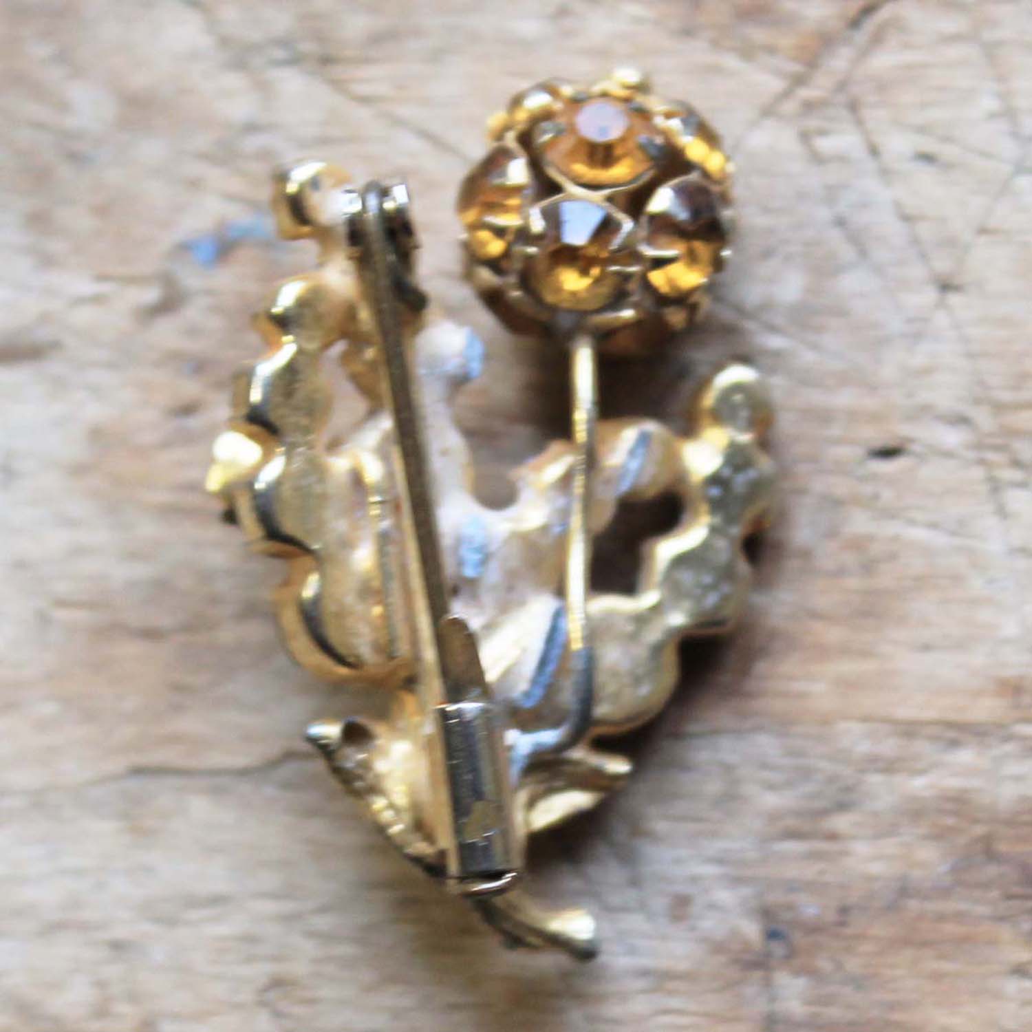 かわいい花のモチーフのブローチ。ペーストグラスが使われています。 古いものなので多少汚れがあります。