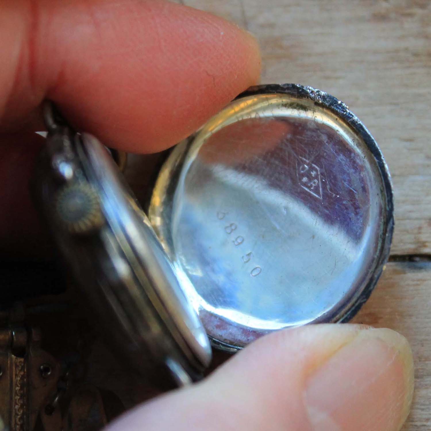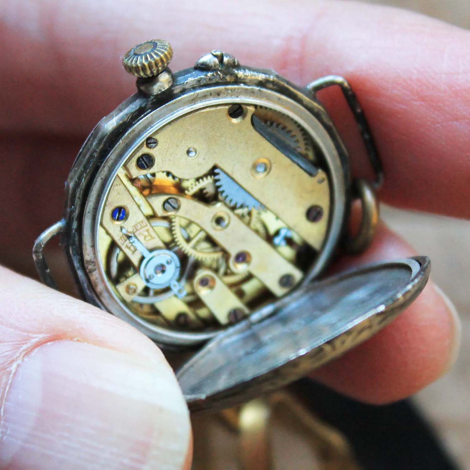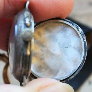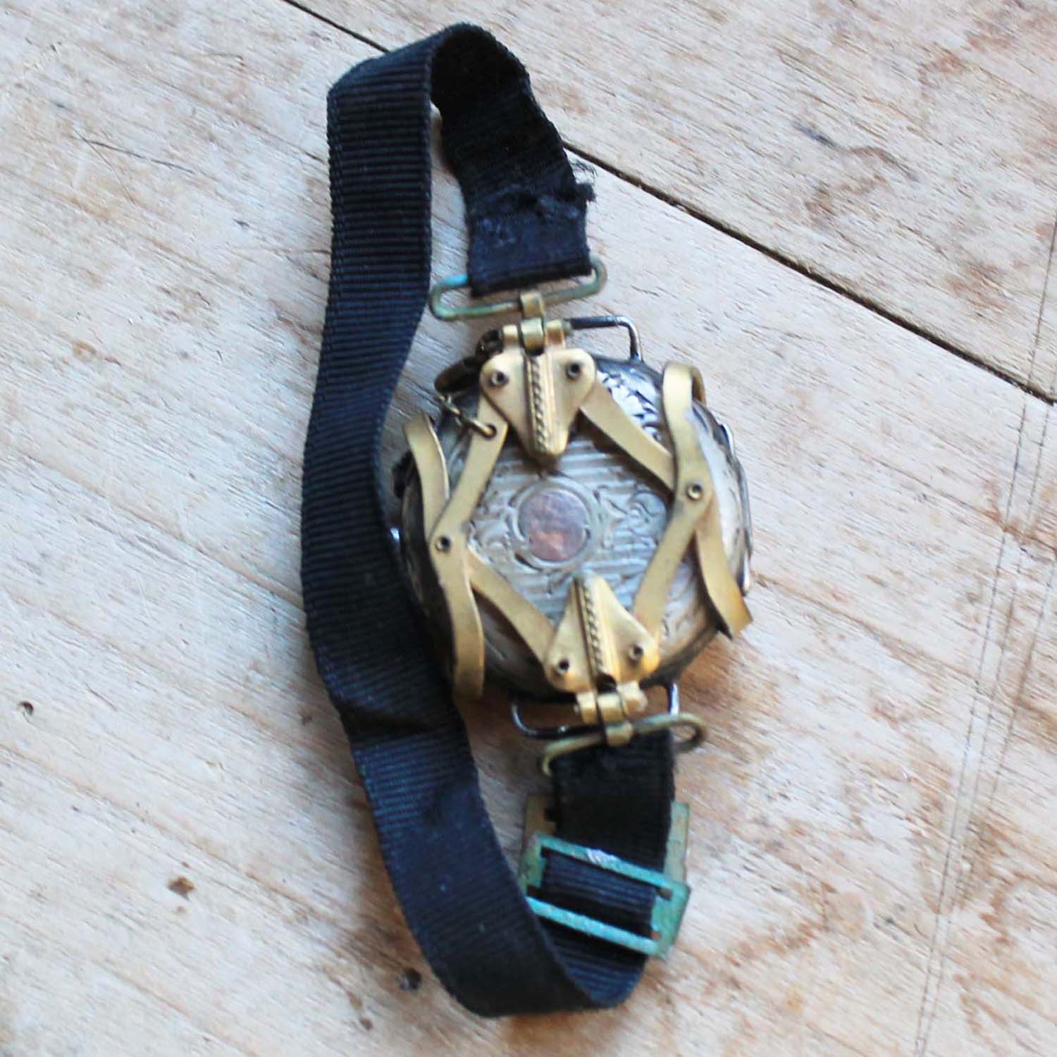 100年以上前の古い女性用腕時計。 時計部分の作りは懐中時計で、腕時計にするベルトがついています。時計のFaceはホーロー製です。 古いものなので時計は動いていません。