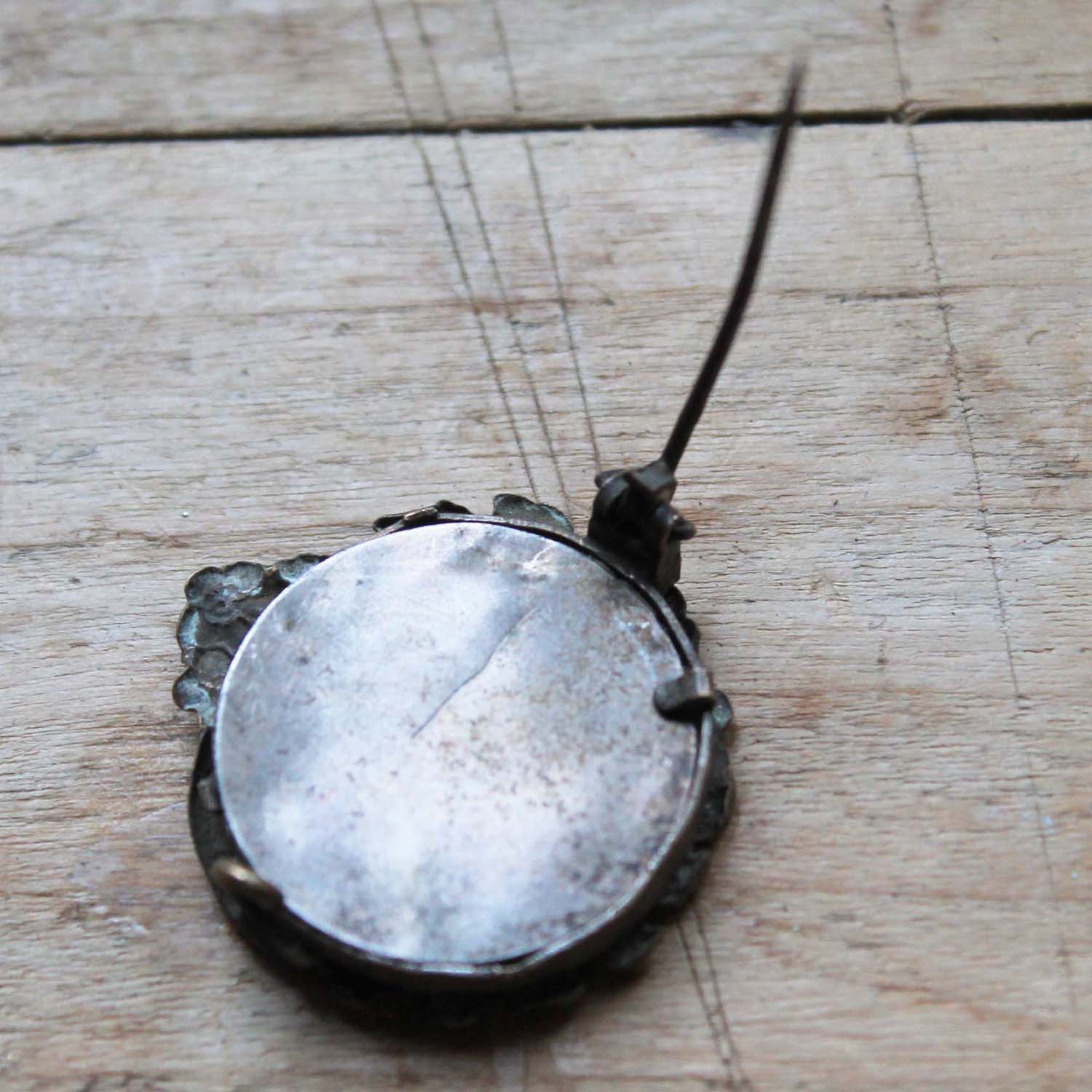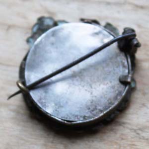 中に写真が入っている額型のブローチ。古いものなので多少の傷、汚れがあります。