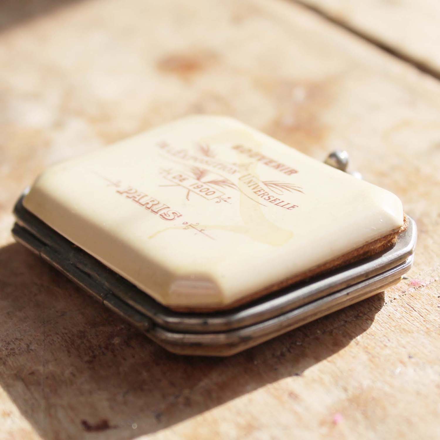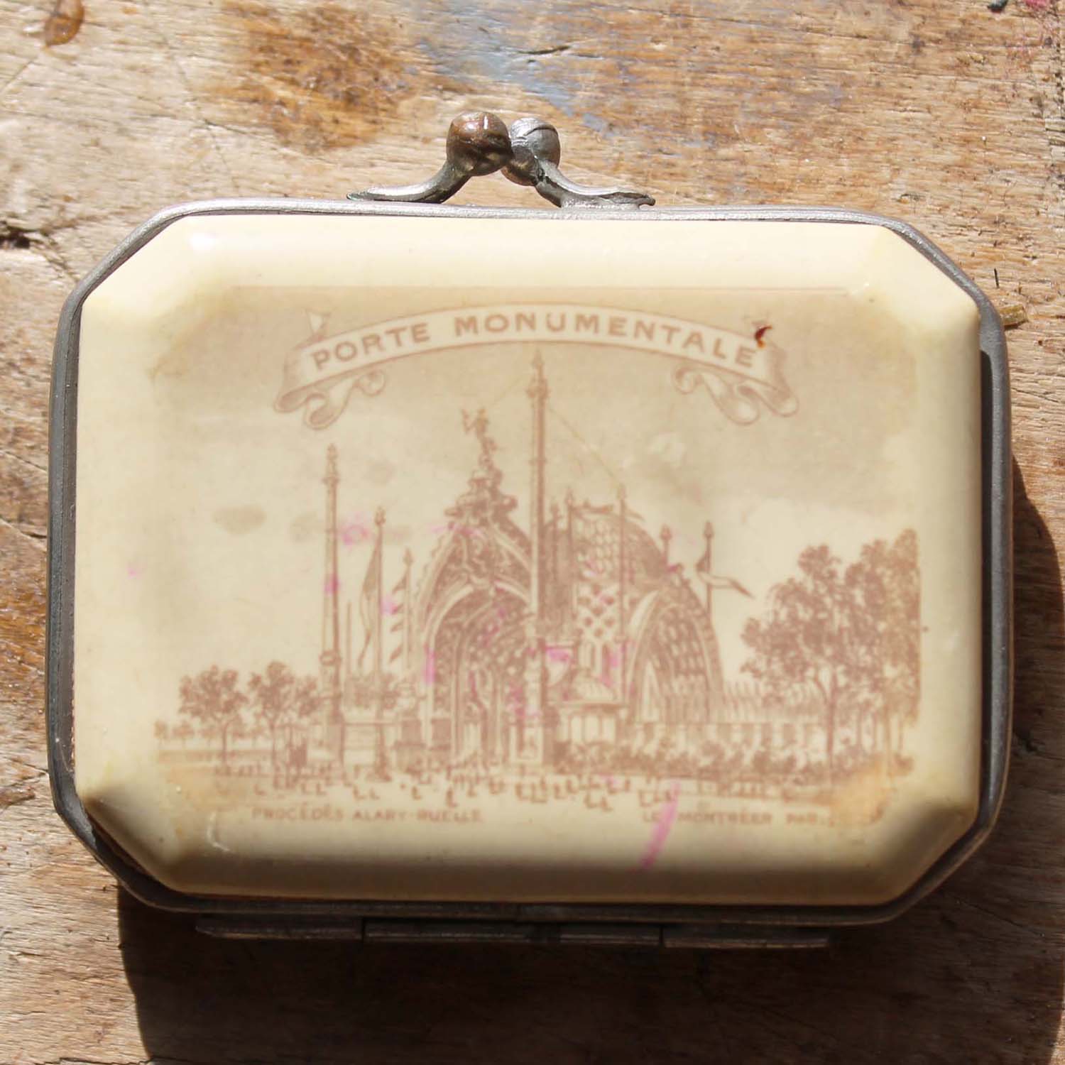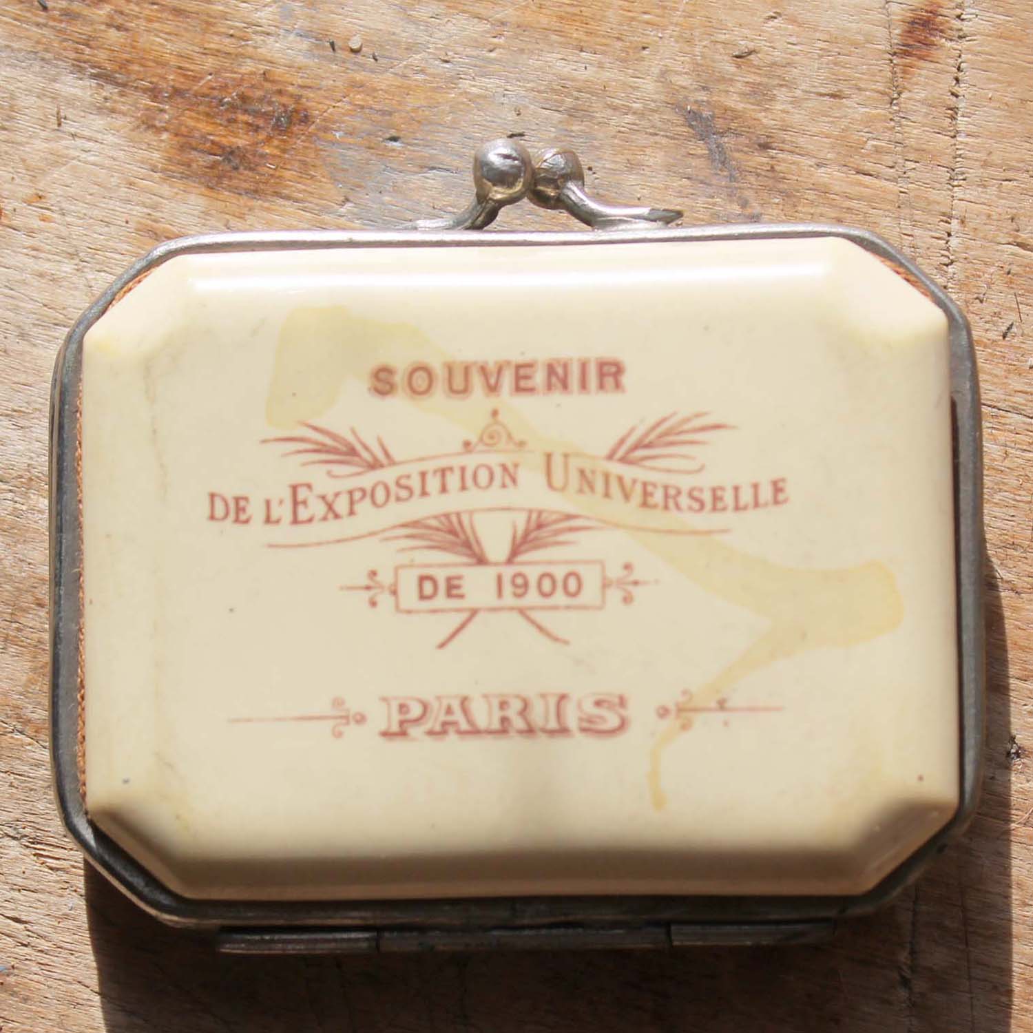 1900年のパリエキスポの記念のお土産品。 小銭入れです。 アイボリーのところはベークライト(ガゼイン)だと思います。古いものなので多少の汚れ、傷があります。