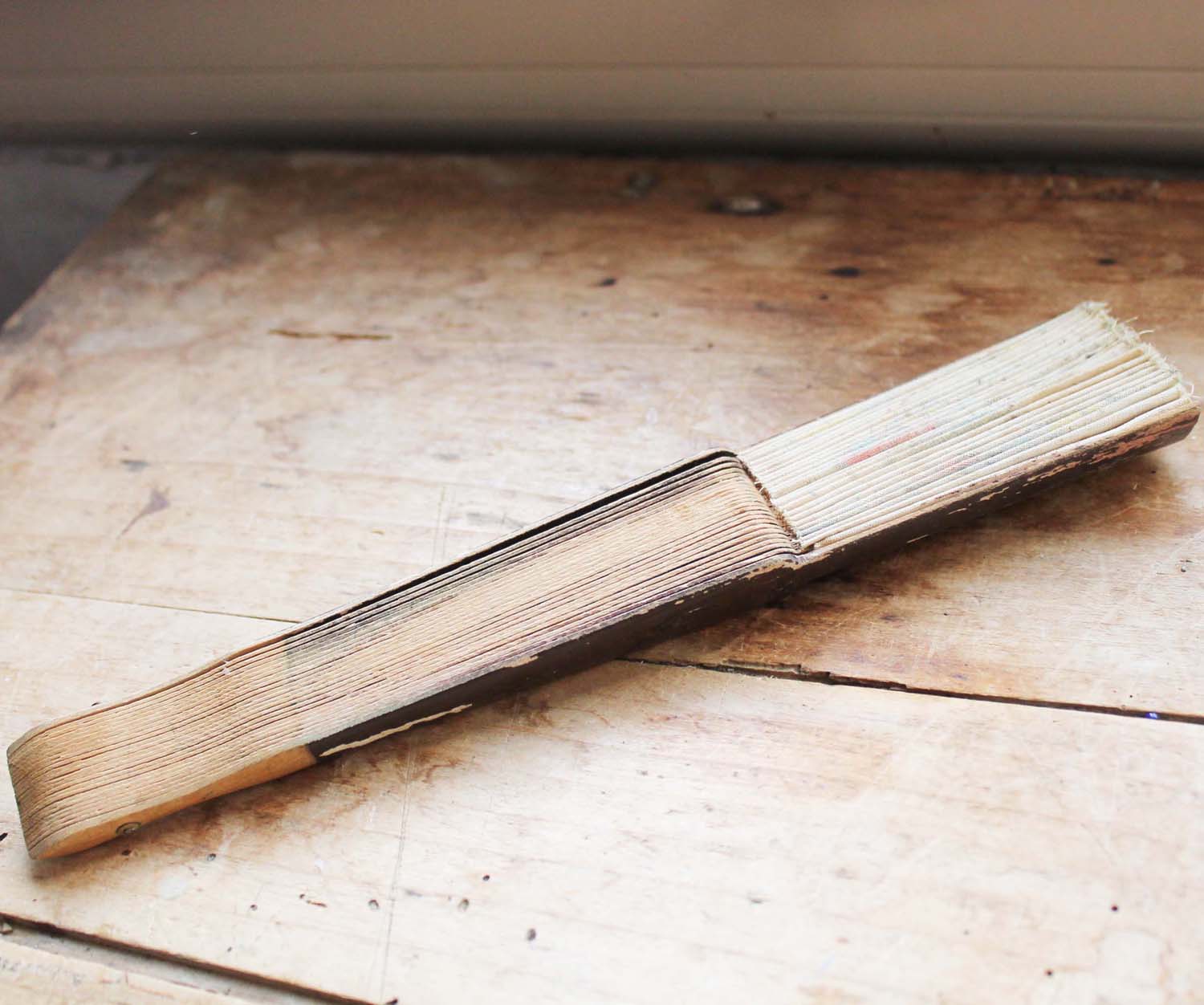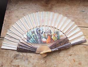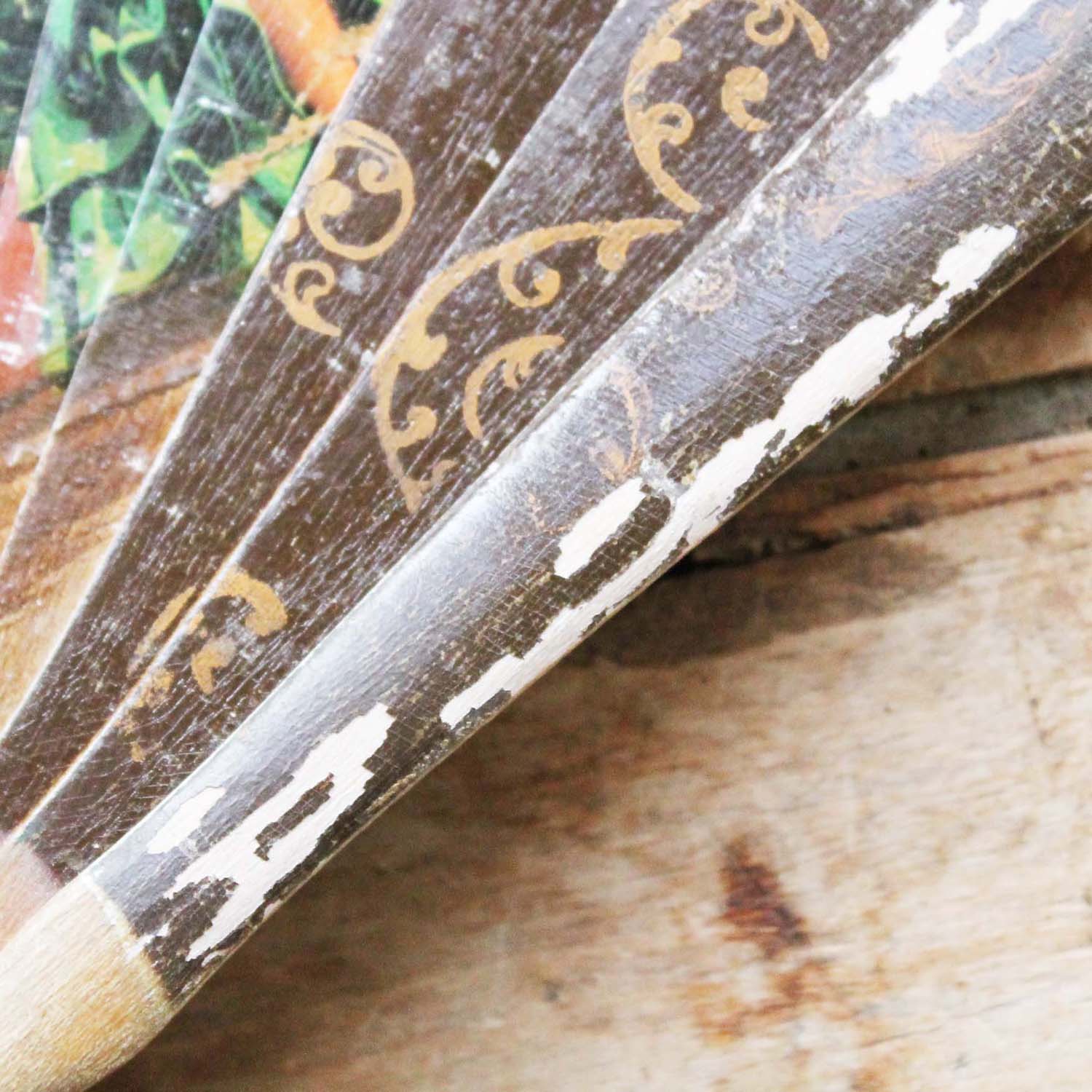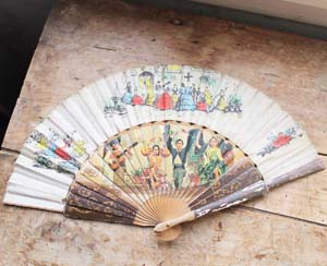 1950年代ぐらいの古いスペイン製のセンス。 布と木でできています。古いものなので傷、汚れ、ペイントの葉枯れがあります。