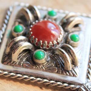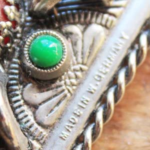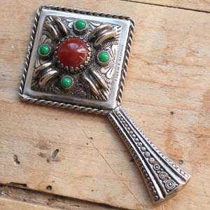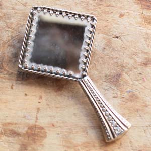 今はない西ドイツ製の小さな手鏡。ガラスのような飾りがついています。古いものなので多少の汚れがあります。