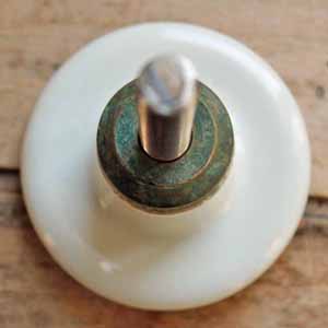 イニシャルが入っているシックなポーセリン製のドアノブ。古いものなので多少の傷、汚れがありますが、ポーセリンにダメージはありません。