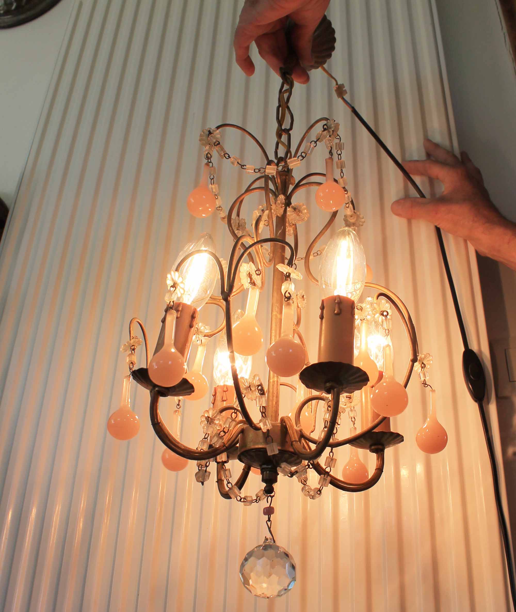 【商品番号】F200030 【商品名】ヴィンテージ ミルクグラス製シャンデリア ピンク