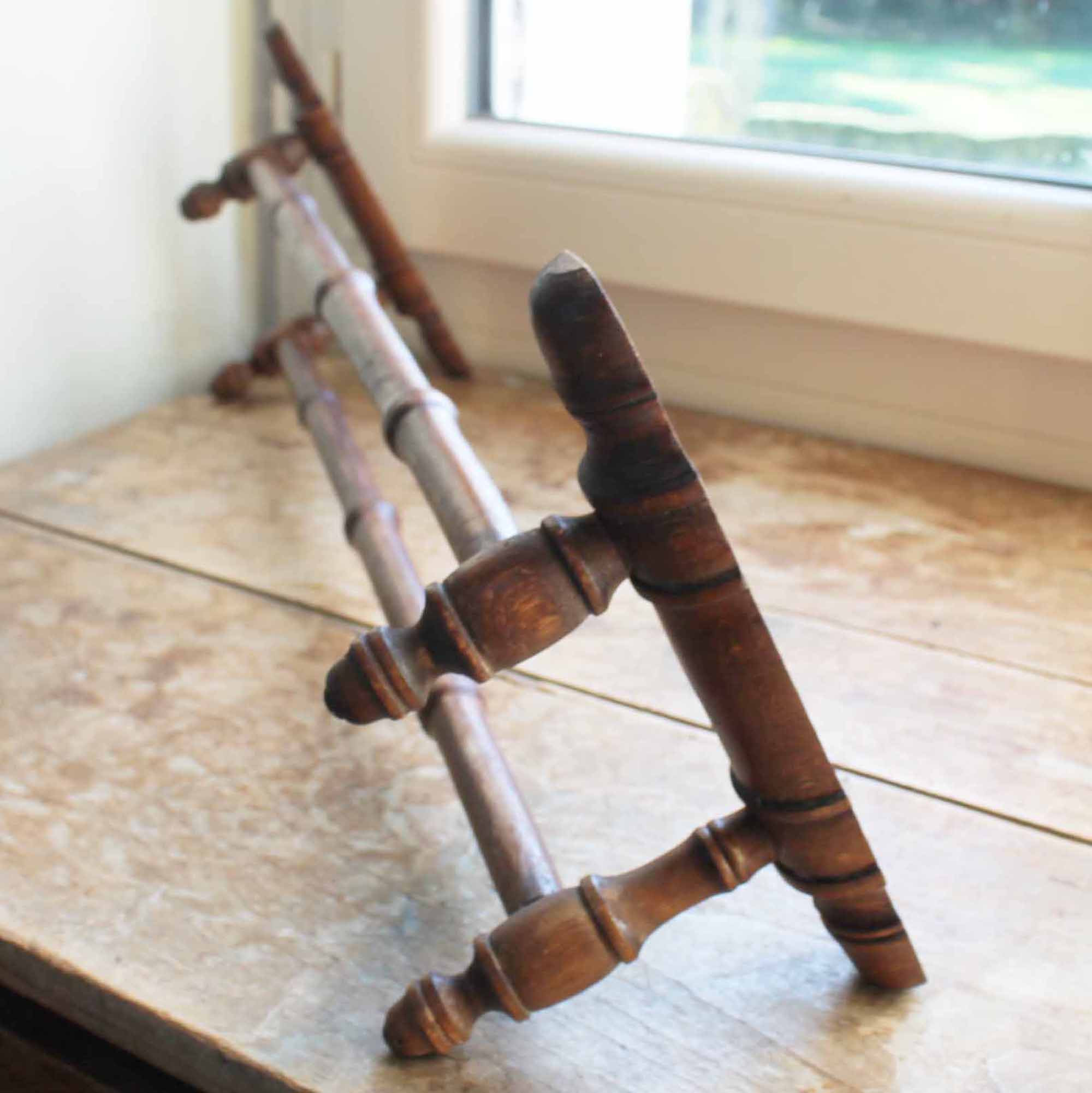 Poussez(押す)と書かれた珍しいポーセリン製のドアノブ。反対側はシンプルな楕円のポーセリン製のドアノブになります。古いものなので淵に欠けがあります。