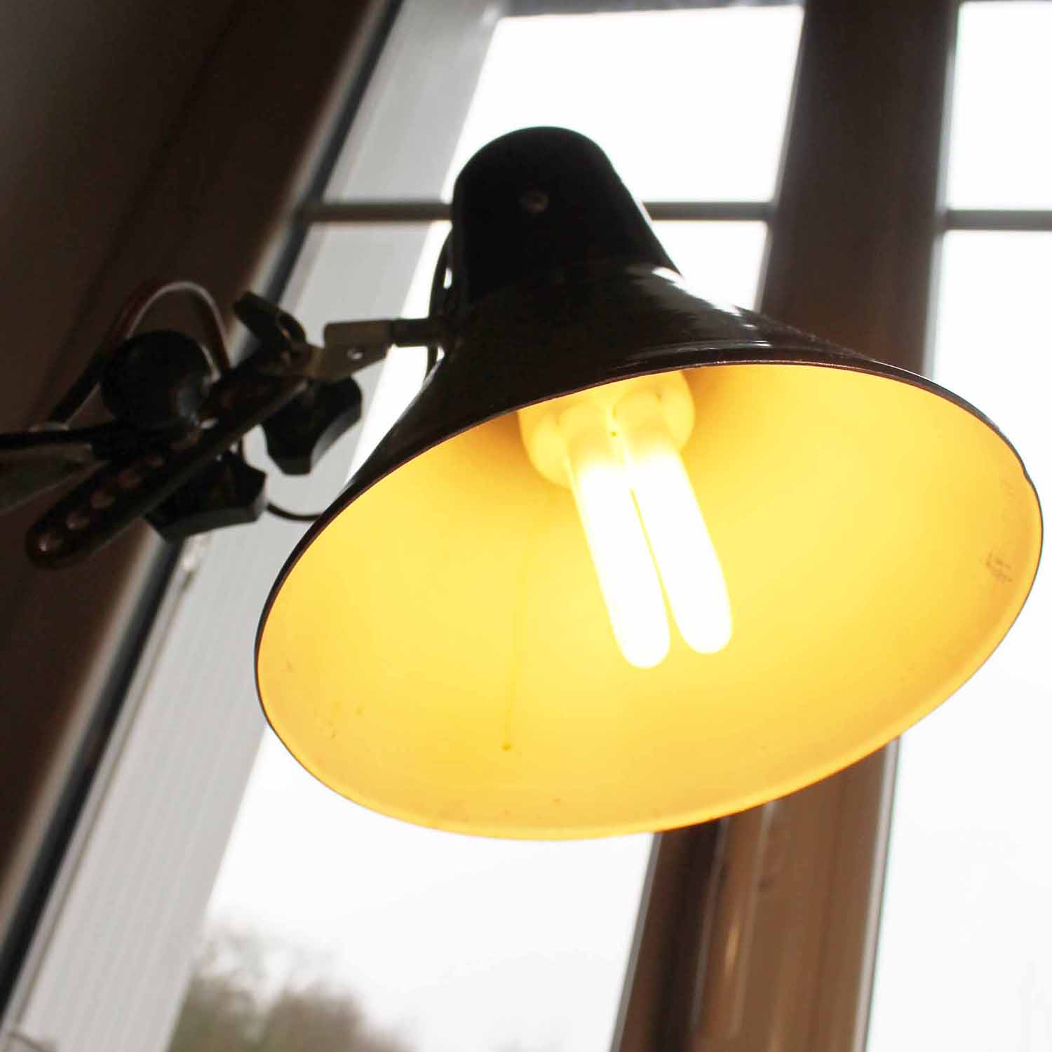 古い金属製のデスクランプ。 ねじがすべてマイナスなので、20世紀初期のものだと思います。色はわかりにくいですが、黒に近いこげ茶です。ばねのサポートで動かしやすくなっています。古いものなので多少の傷、汚れがあります。万力クリップで取り付けるタイプです。