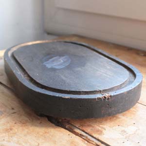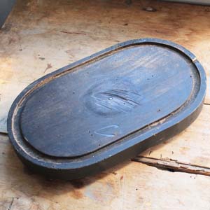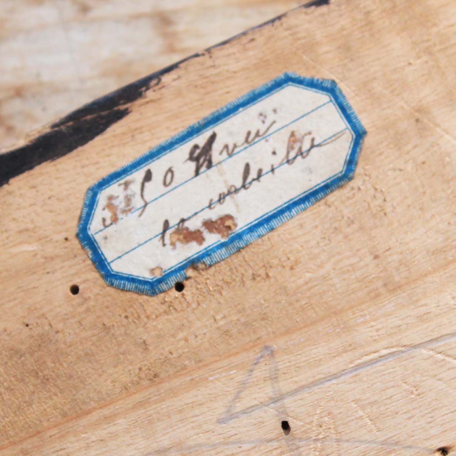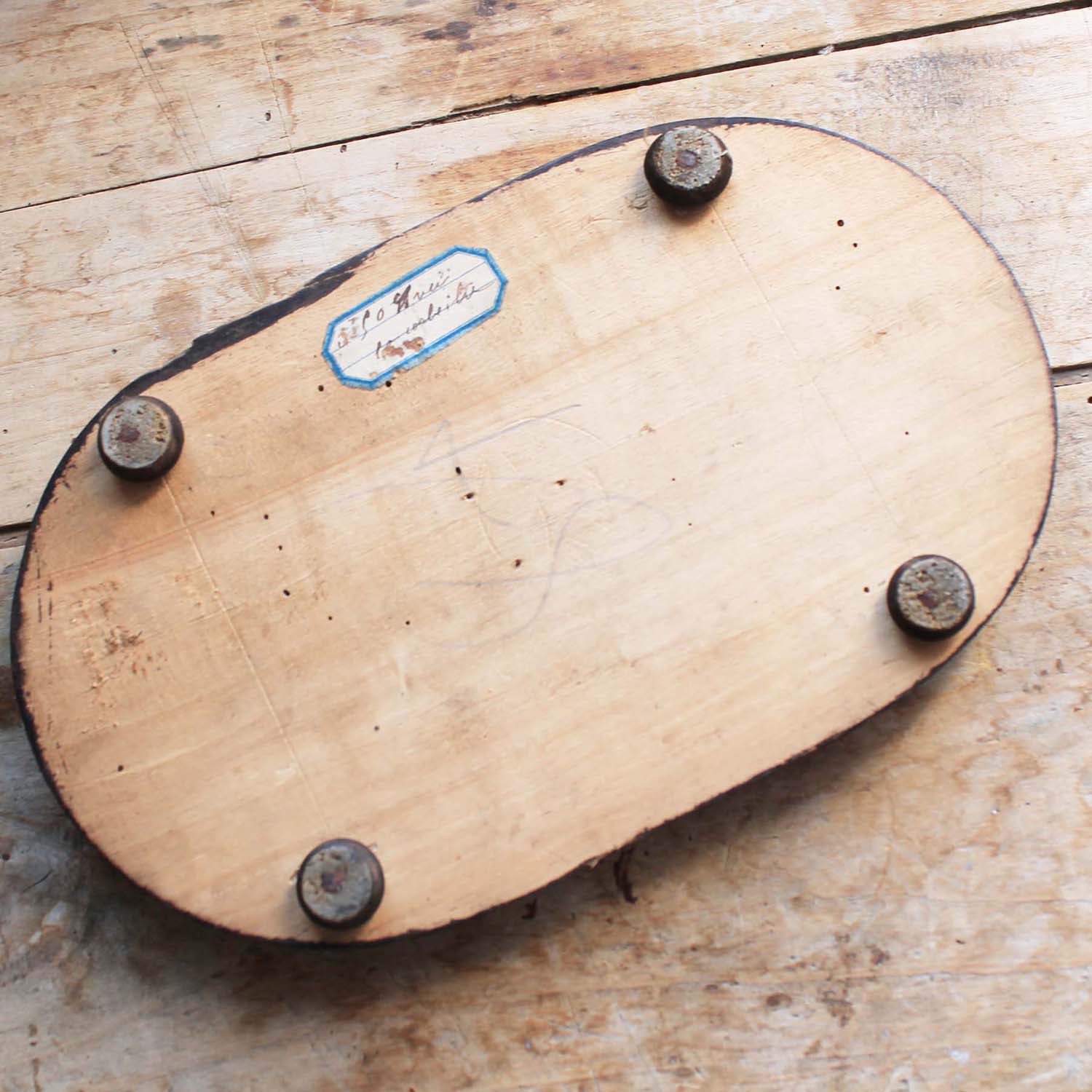 100年ぐらい前の古い木製の台。古いものなので傷、汚れ、虫食いの跡などがあります。裏に当時のラベルがまだ貼ってあります。