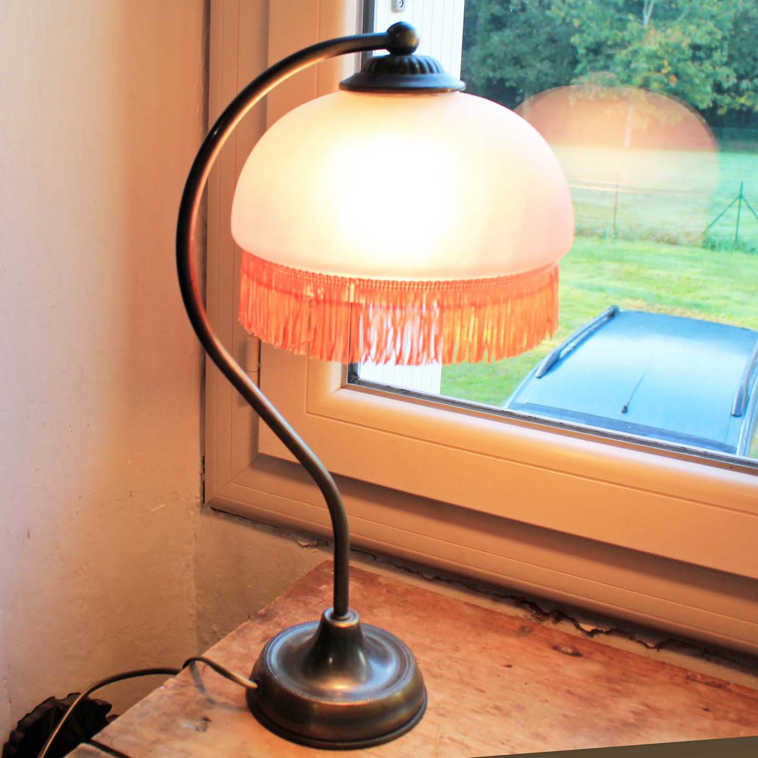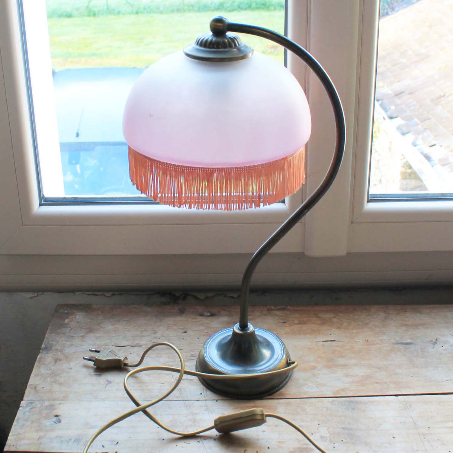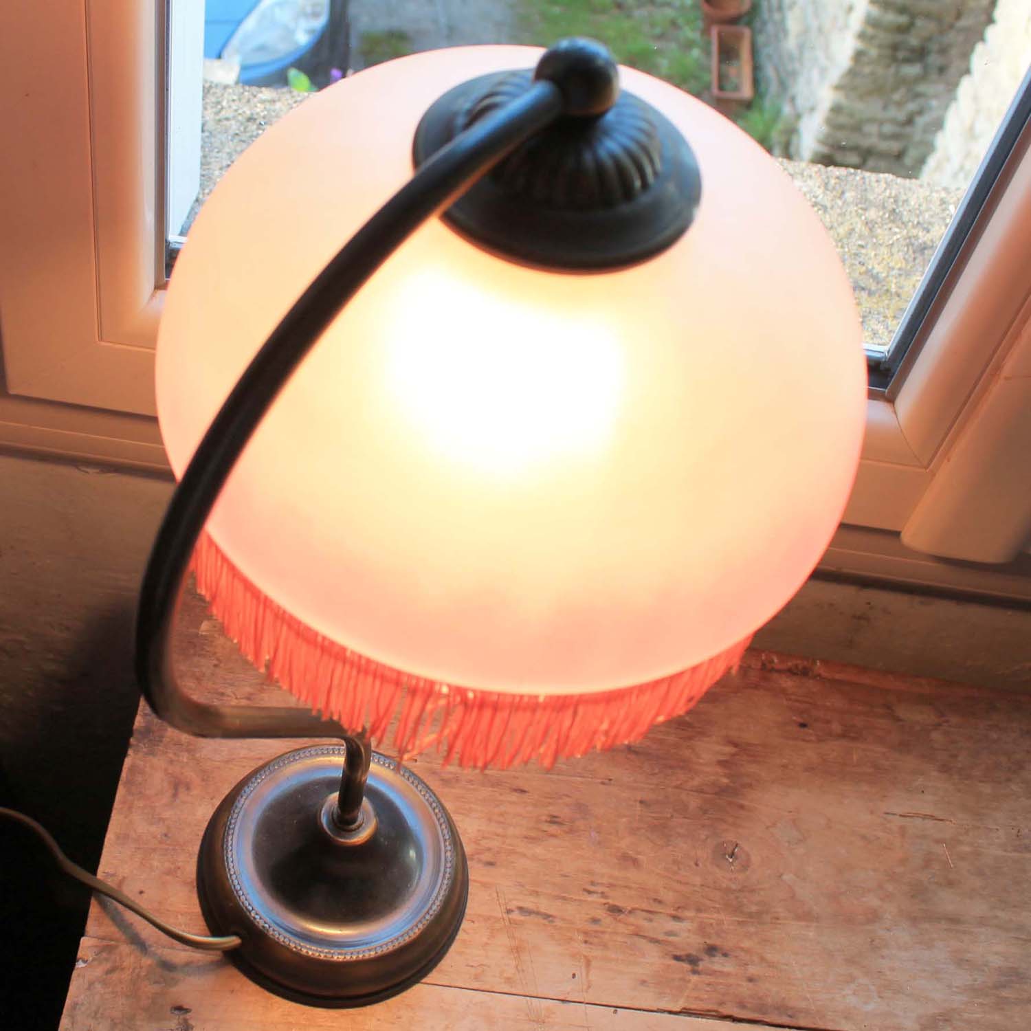 古いチテーブルランプ。傘はガラス製です。電球はE27になります。古いものなので多少の汚れ、傷があります。