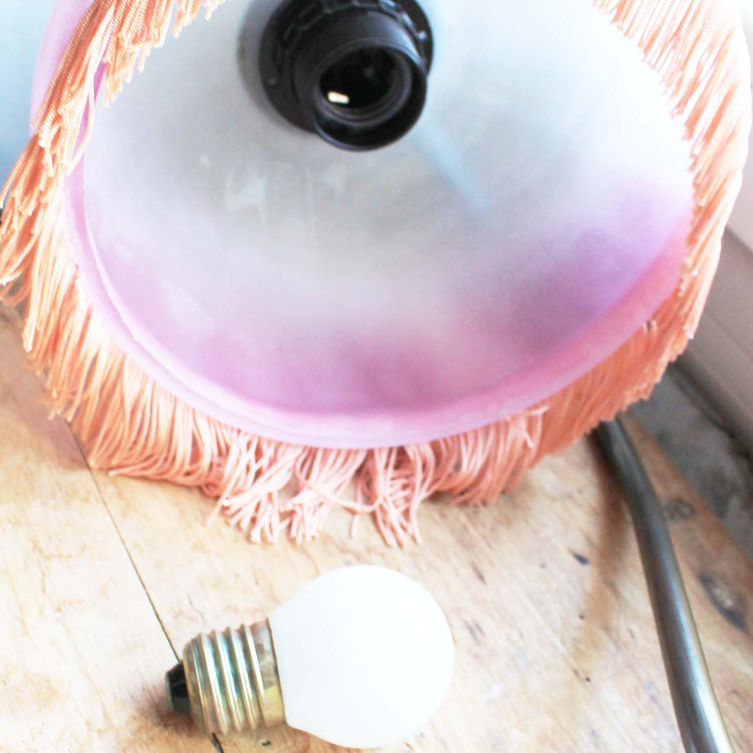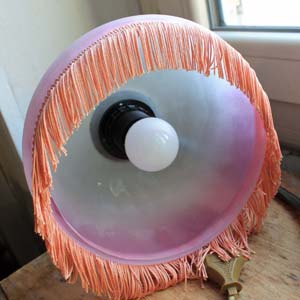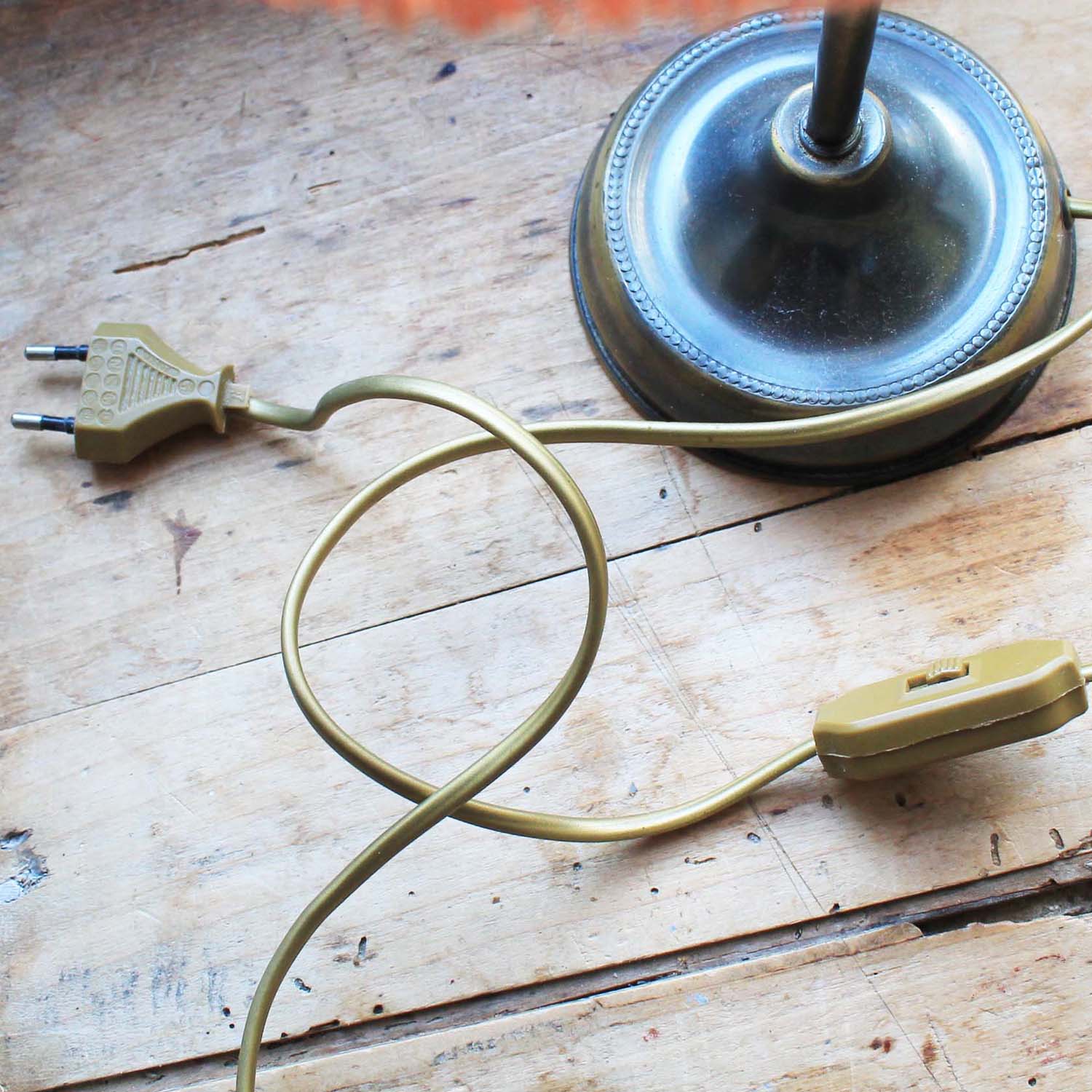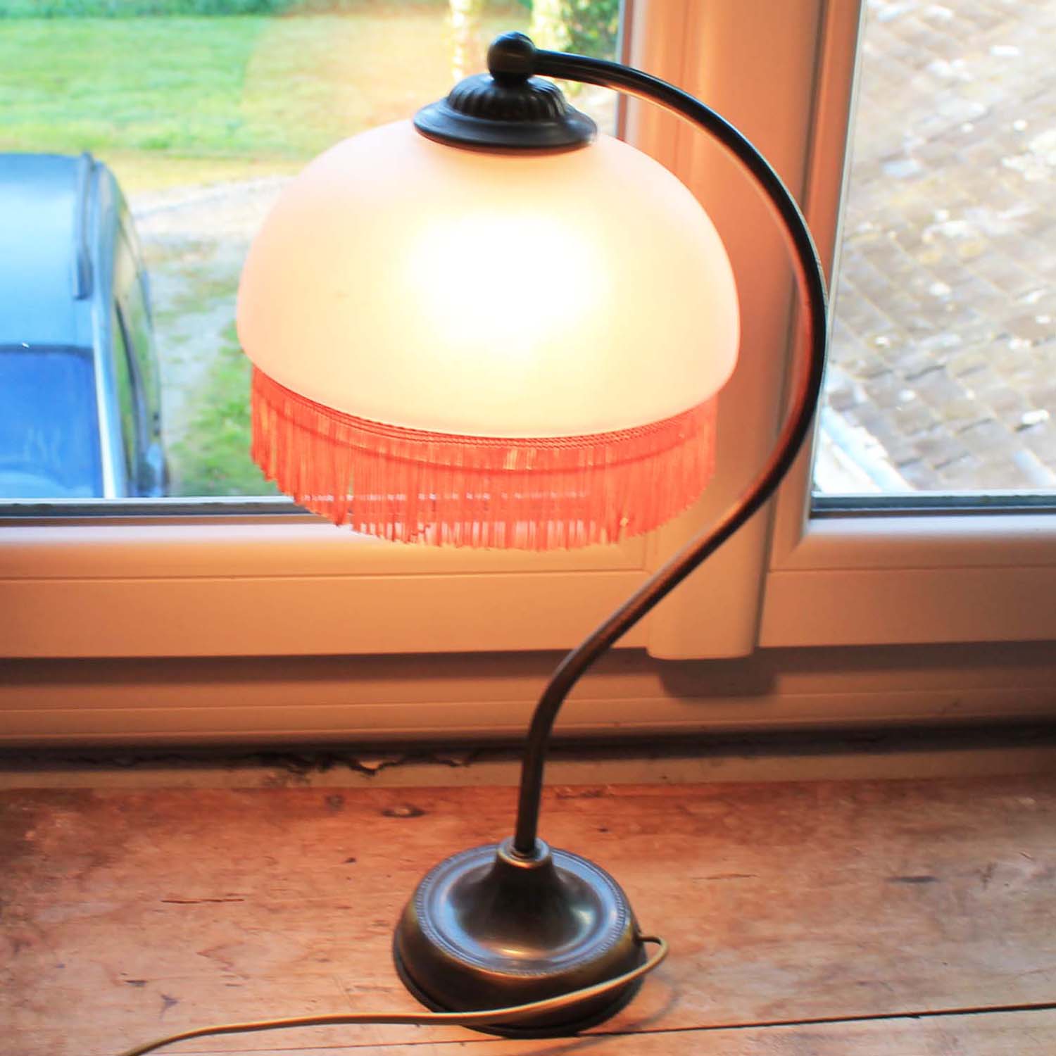 古いチテーブルランプ。傘はガラス製です。電球はE27になります。古いものなので多少の汚れ、傷があります。