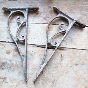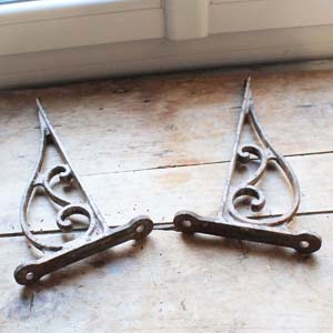 カーストアイアン製の古い棚の足。 棚の部分(木)はなく、足だけです。壁に取り付けるタイプで、棚(木)の縦部分は28~28.5㎝ぐらいです(長さはお好きな長さにできます)。古い物なので多少のペイントの剥げ、さびがあります。