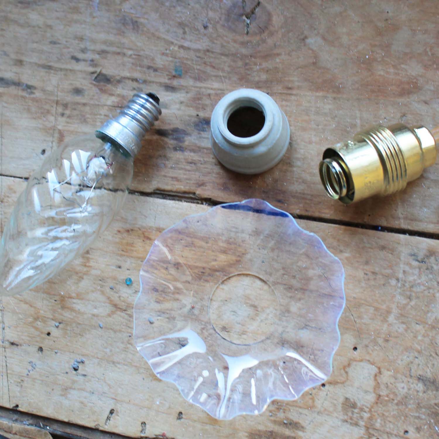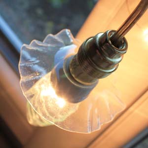 ガラスのペンダントランプ。小さな薄いオパリングラスのグラデーションのシェードがかわいいです。 電球はE14のシャンデリア球が入ります。ソケット(新品)の一部分はポーセリン製になります。ガラス部分は古い物なのですが、欠け、ラインはありません。