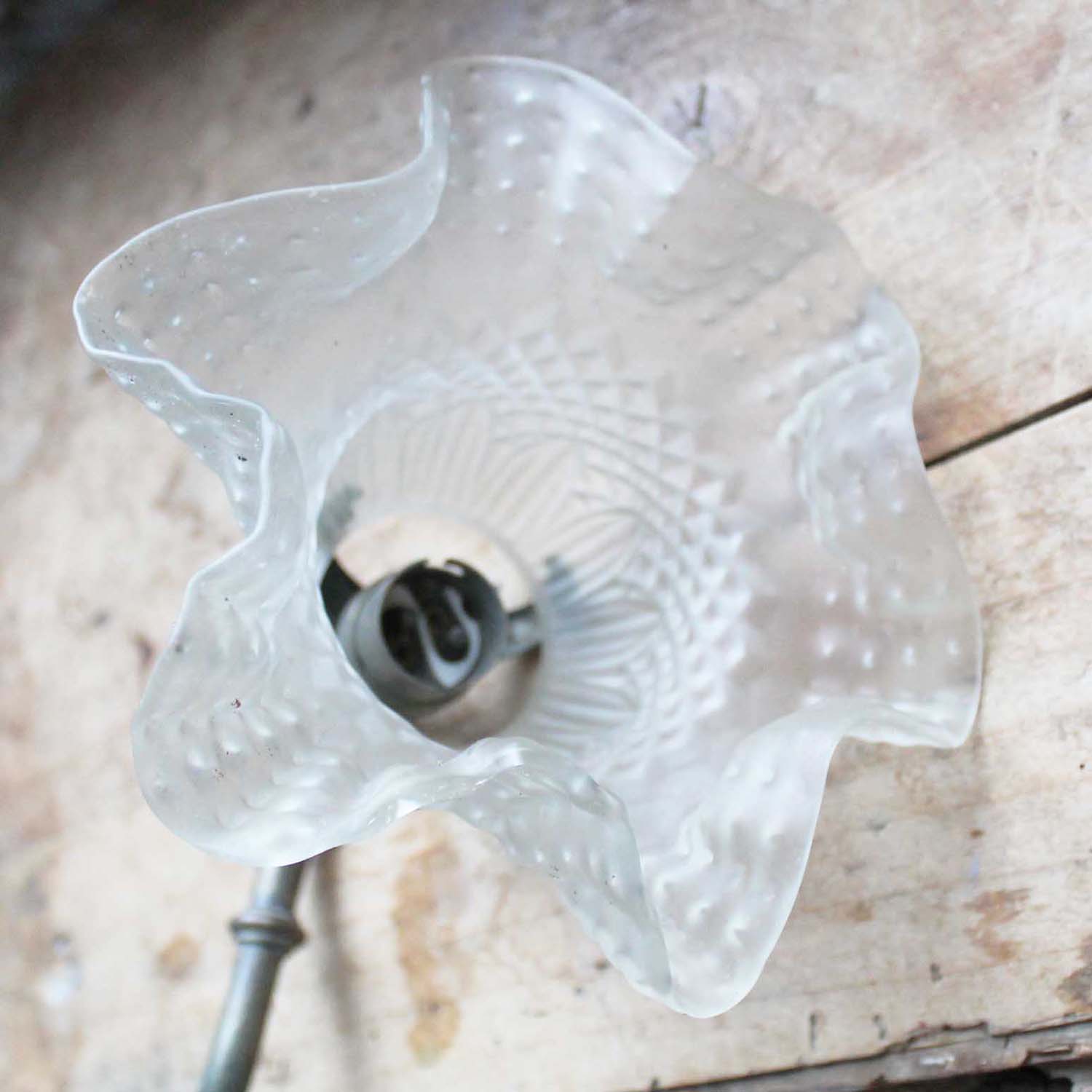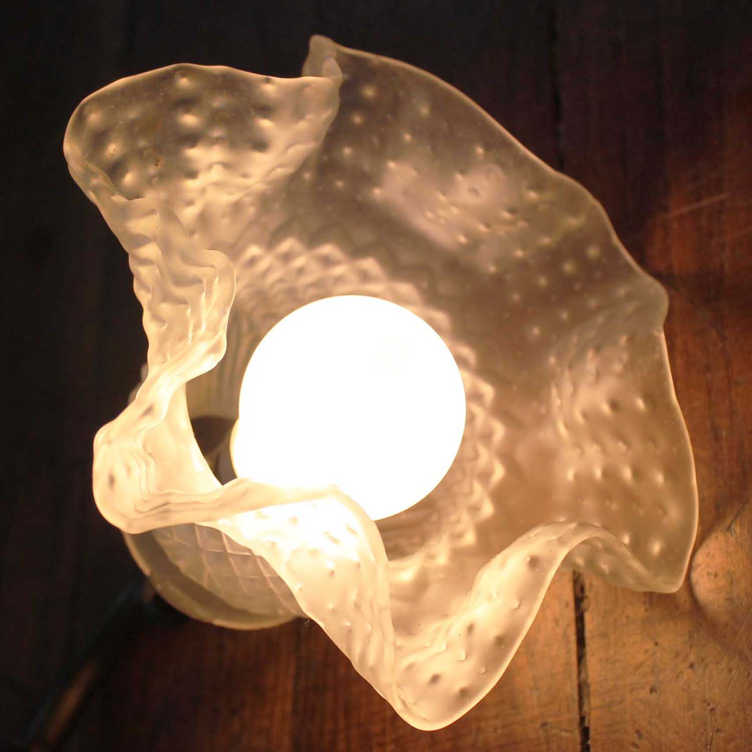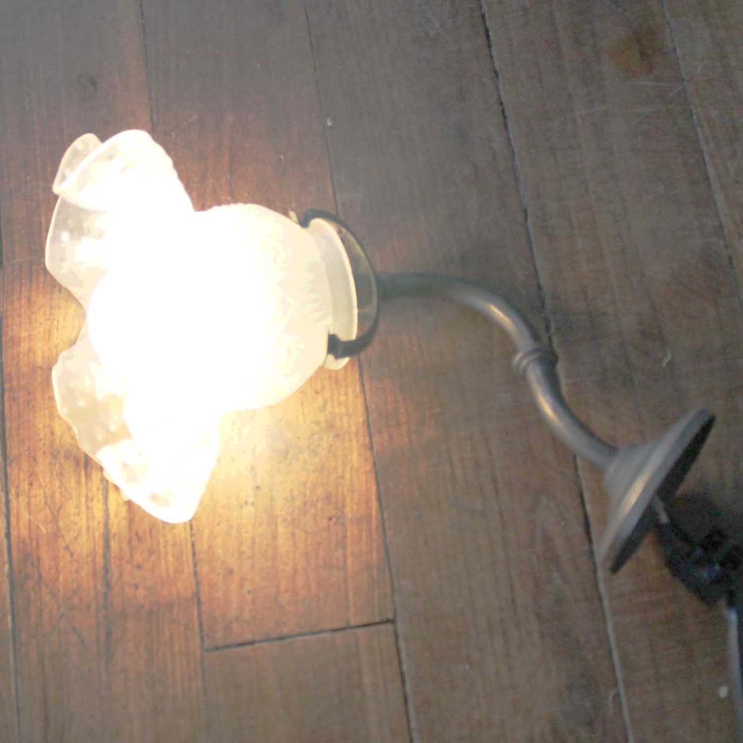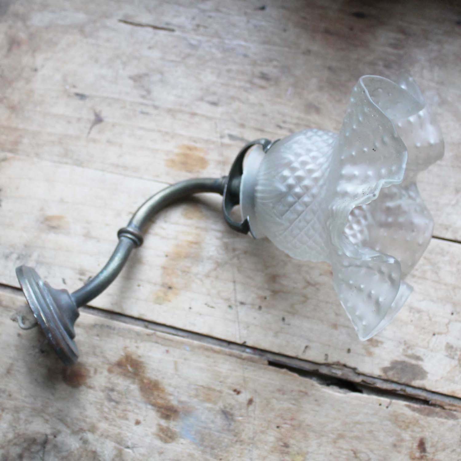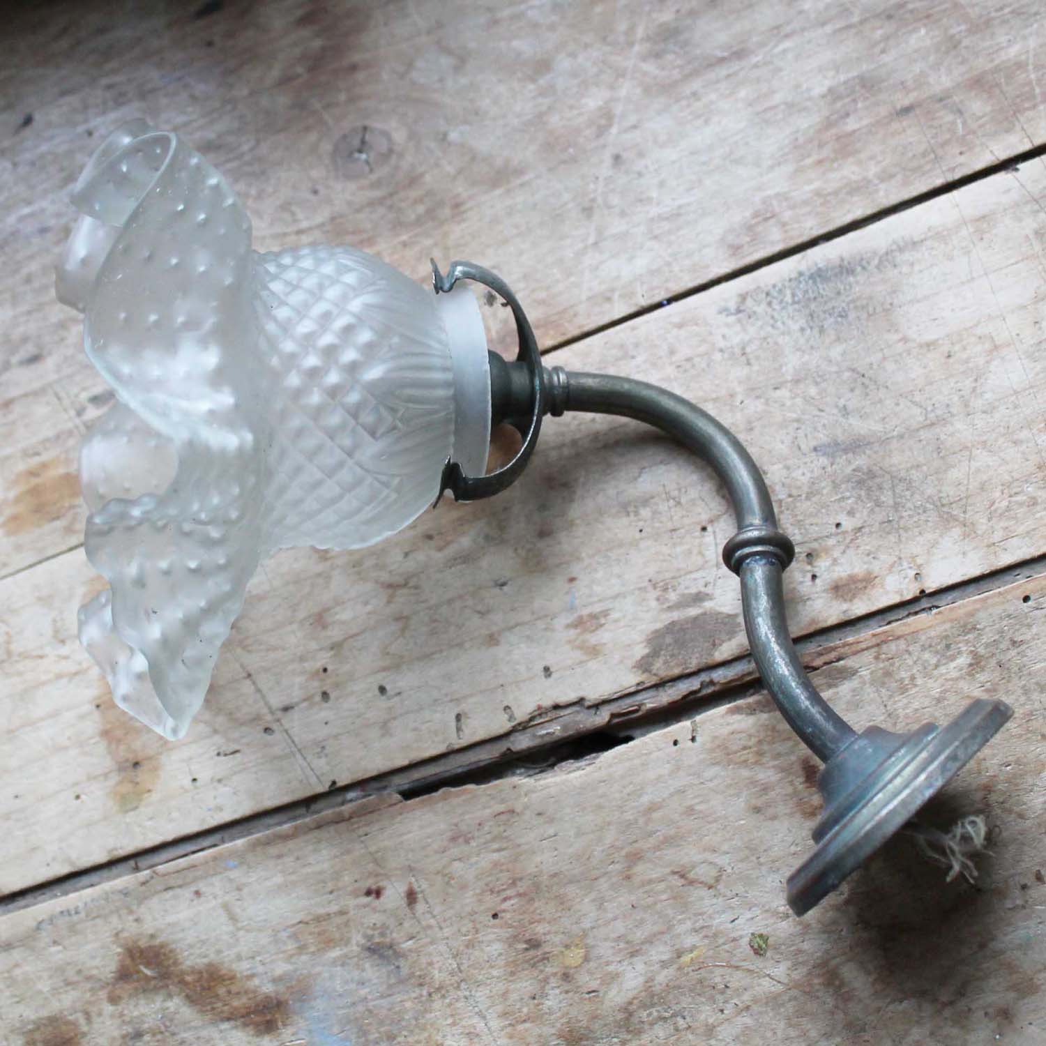 すりガラスのガラスシェードが使われている古い壁用ランプ。 電球はフランスの差し込み式です。シェードにダメージはありません。