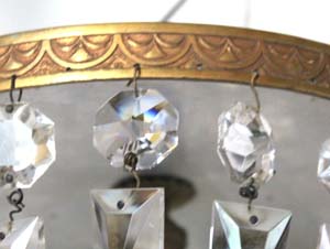 古いエンパイア型 シャンデリア。 電線はフランス式、電球はフランスの差し込み式になります。古いものなので多少汚れがあります。またパーツの一つが別のものに変えてありますが、ほぼわかりません。