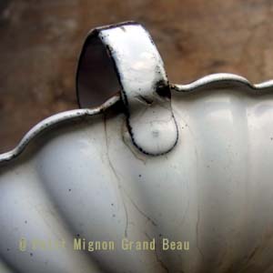 エンジと白のグラデーションが素敵なホーロー製のキャンドルスタンド。 リベットが使ってあるので1920年代ぐらいの物だと思います。 古いものなのでさび、汚れ、ホーローの欠けがあります。