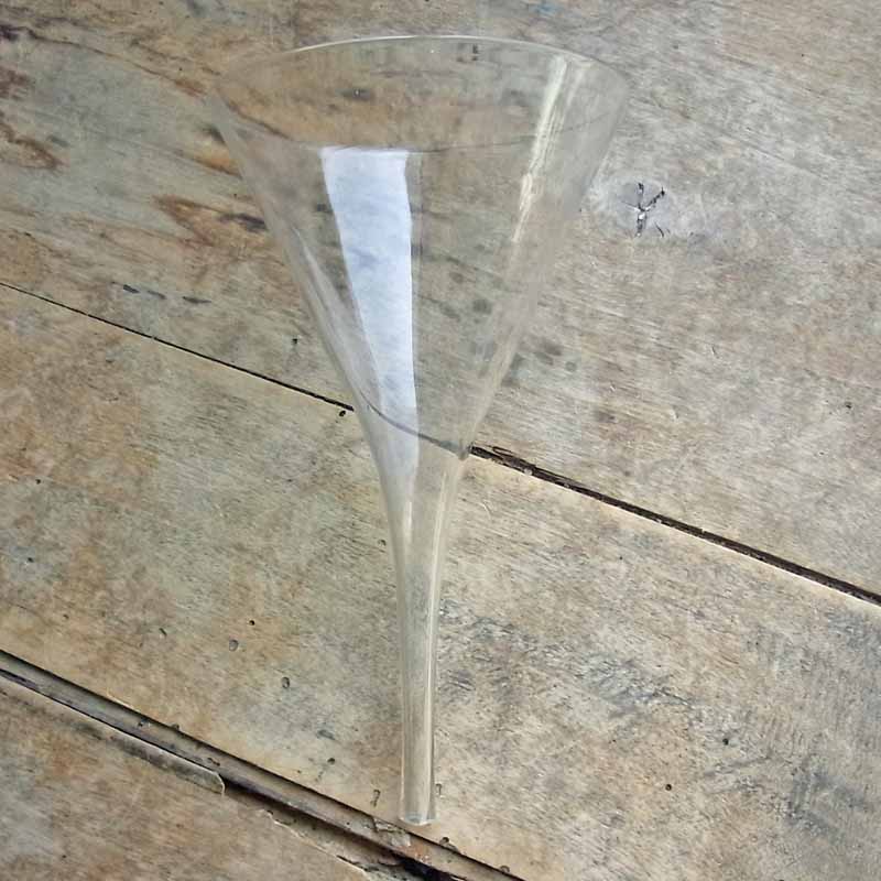 古い吹きガラス製のロート。 作られた当時に入った気泡やガラスのゆがみがありますが、欠け、ラインはありません。