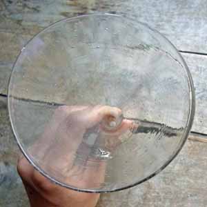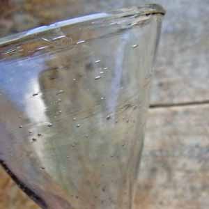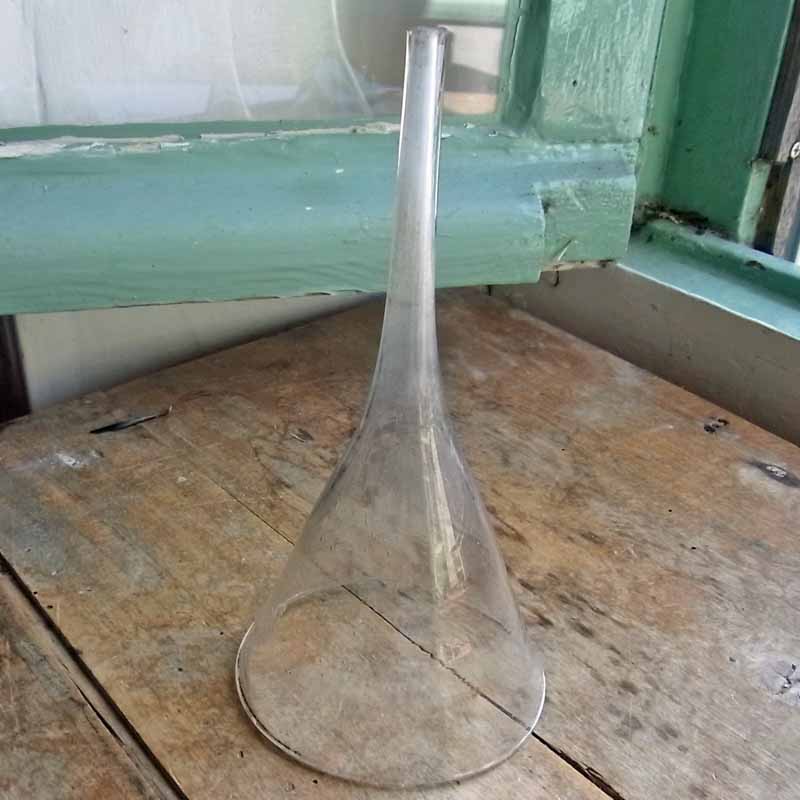 古い吹きガラス製のロート。 作られた当時に入った気泡やガラスのゆがみがありますが、欠け、ラインはありません。