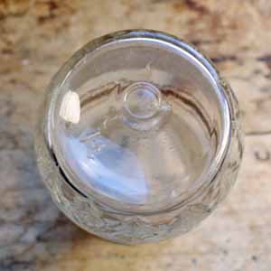 古いガラス製の球根用花瓶。曇りガラスと金彩が併用された凝ったものです。古いものなので多少の傷がありますが、欠け、ラインはありません。