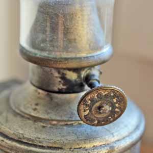 100年ぐらい前の古いオイルランプ。 古いものですがまだ使えます。壁に掛けられるように取っ手のところにフック用の穴が開いています。ガラス部分をホールドするところが無くなっていますが、普通にお使いになる分には問題ないと思います。古いものなので多少の汚れ、傷、凸凹があります。状態を鑑みて格安のお値段を付けました。