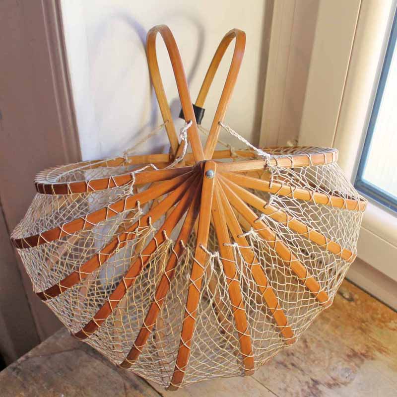 【商品番号】I160250 【商品名】ミッドセンチュリー 折り畳み 竹製魚釣り用かご