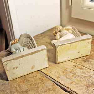 かわいいエンジェルのブックスタンド。 メーカーはHB Quimperです。カンペール焼きは18世紀から全く製作方法が変わらない窯で今でもコレクタブルとして全世界で愛されています。こちらの商品は古いもののため、ペイントのはがれ、傷、汚れ、土台の角に小さな欠けがあります。
