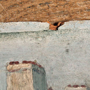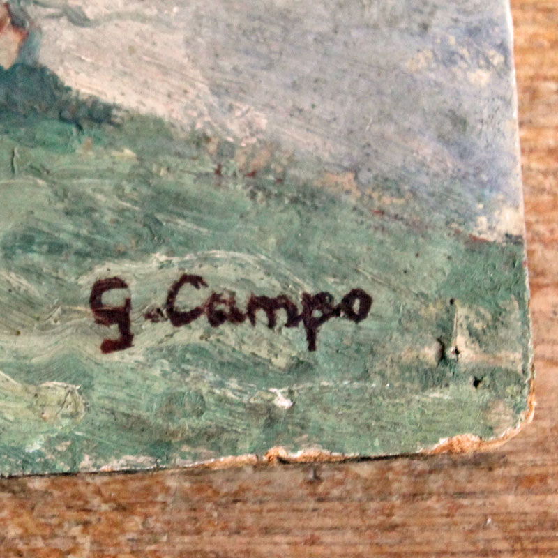 古い油絵。 ブルターニュ地方特有の漁船(朱色の帆)が描かれています。 作者はG. Campo、年代はありません。古いものあのでボード(油絵用厚紙)の欠け、傷があります。