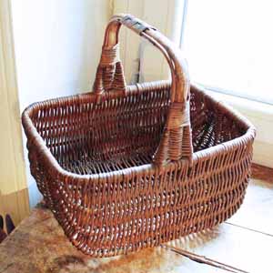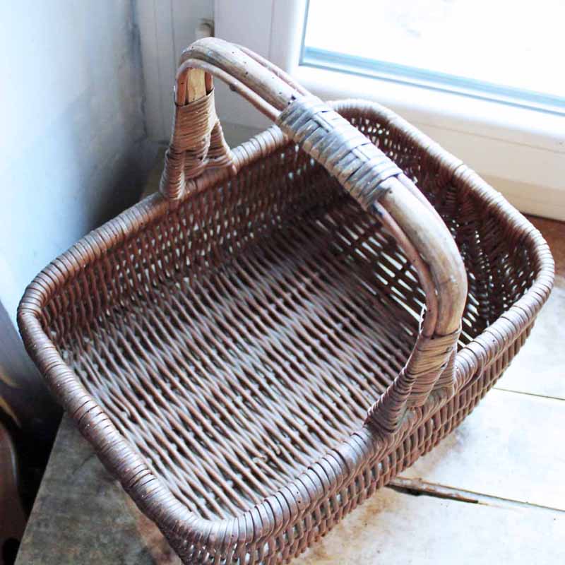 買い物に使われていた籐製のかご。古いものなので多少の傷、汚れ、虫食い、籐の割れがありますが、使用できます。