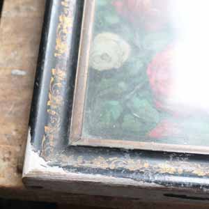 古いキリスト様のプリント画&木製額。キリスト様がまだ子供の時のプリント画でかわいいです。古いものなので額に傷、汚れ、ペイントの剥がれなどがありますが、ガラスにダメージはありません。
