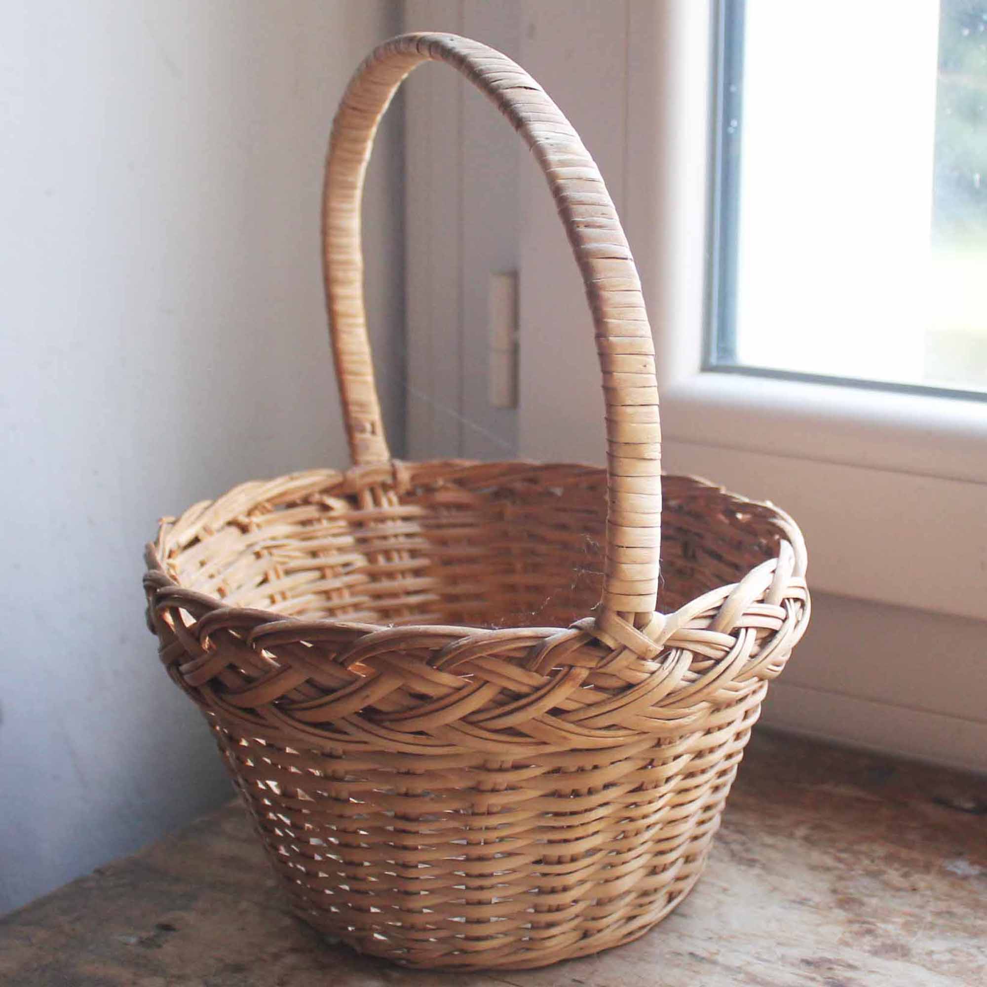 小さな籐製バスケット。 古いものなので多少の傷、汚れ、藤の割れがあります。