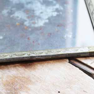 100年ぐらい前の古いフォトフレーム。裏の足の部分が取れていますが、穴が開いていますので、ここに針金などで足を取り付けてもらえると思います。ガラスを抑える部分がないので(床に立てかけることで抑えている)壁掛けにはなりません。状態を鑑みて格安のお値段を付けました。