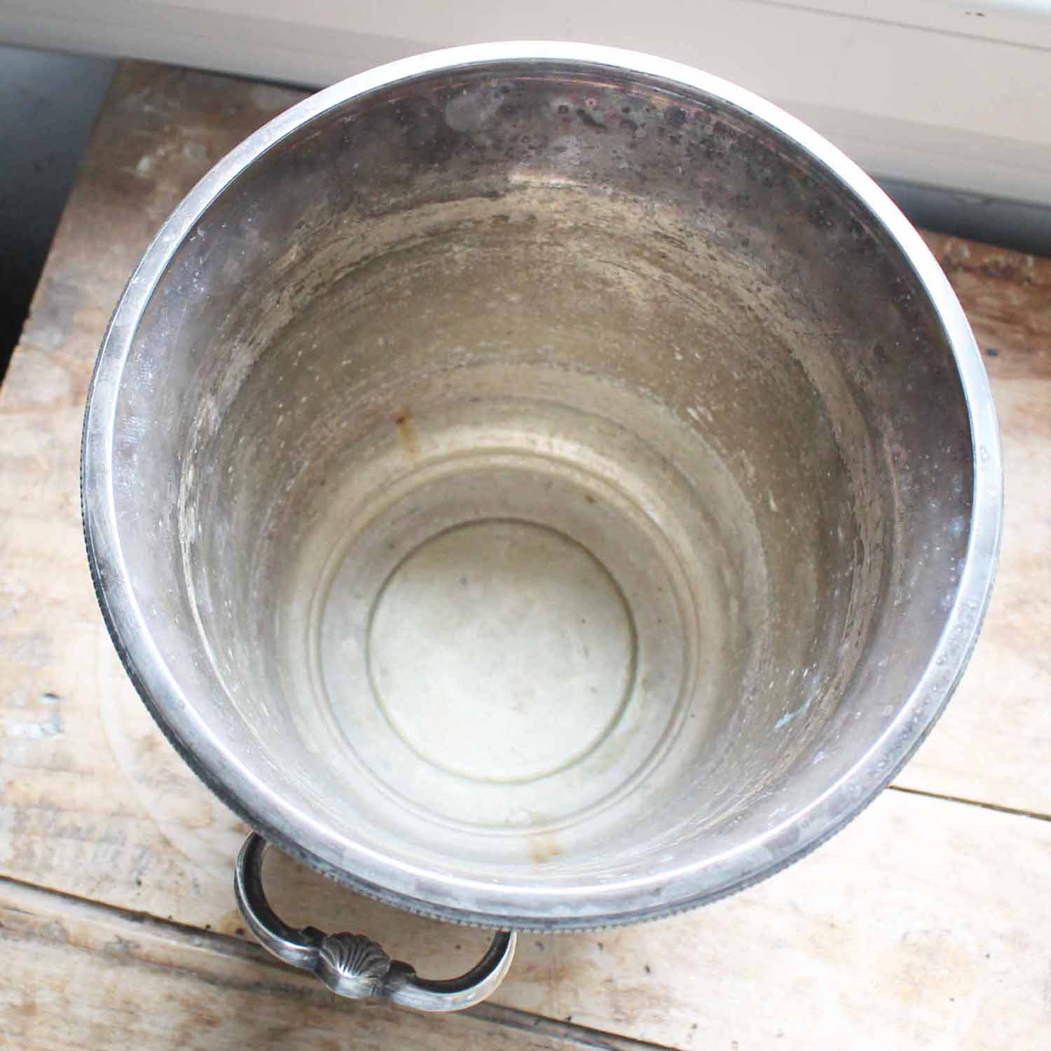 古いワインクーラー。刻印はないのですがシルバープレート製だと思います。古いものなので金属の変色、でこぼこがあります。