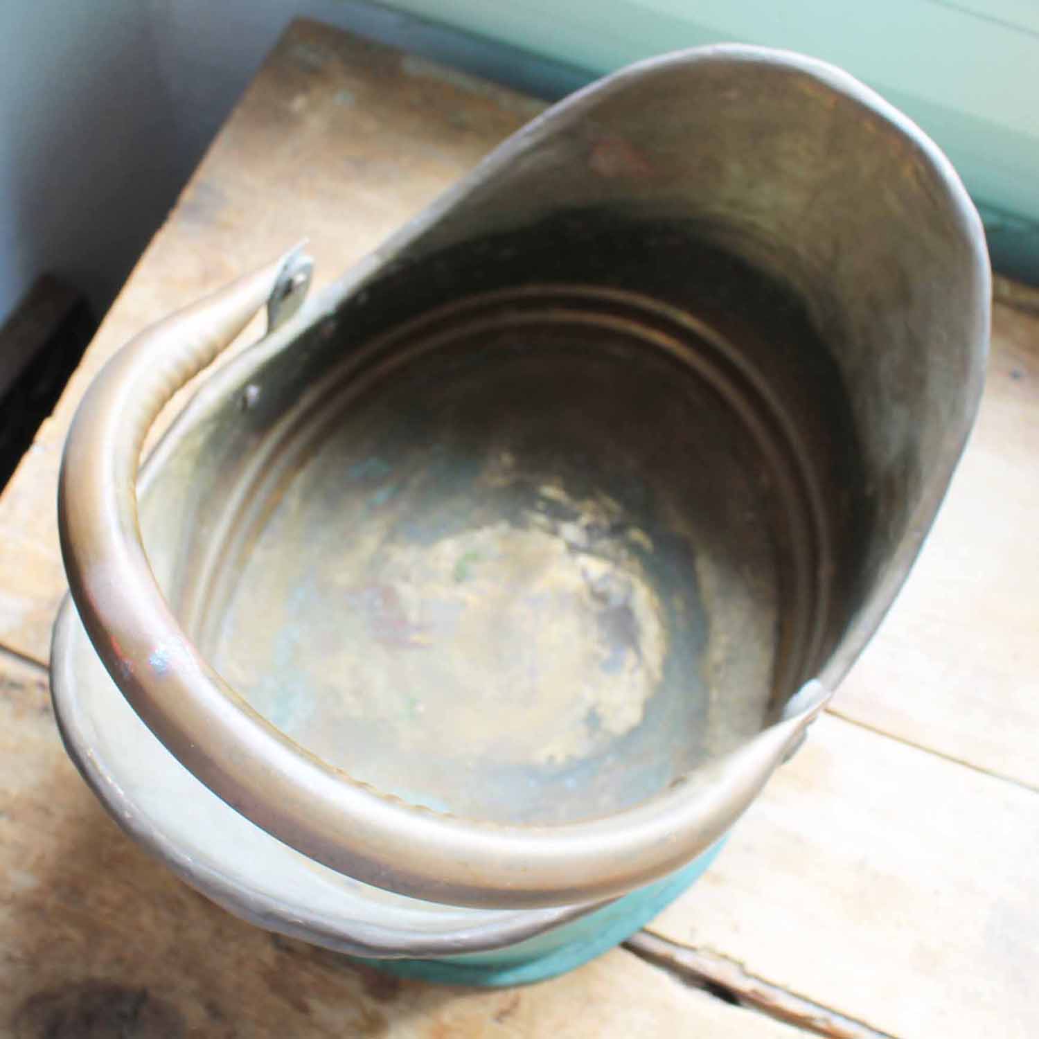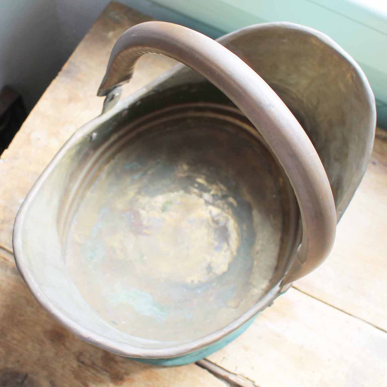 暖炉の石炭を運ぶためのコッパー製のバケツ。 緑色の部分はペイントです。古いものなので傷、汚れ、でこぼこがあります。