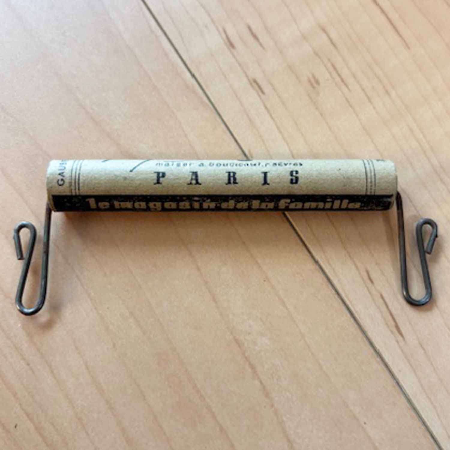 100年ぐらい前の古い手提げ用持ち手。パリのデパート Bon Marcheのものです。持ち手部分は厚紙で出来ています。昔は商品を紙で包み、紐でくくってからこの手提げ持ち手を取り付けてお客様に渡していました。今は全く製作されていませんので、レア商品です。 日本国内配送になります。