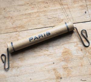 100年ぐらい前の古い手提げ用持ち手。パリのデパートPrintempsのものです。昔は商品を紙で包み、紐でくくってからこの手提げ持ち手を取り付けてお客様に渡していました。今は全く製作されていませんので、レア商品です。