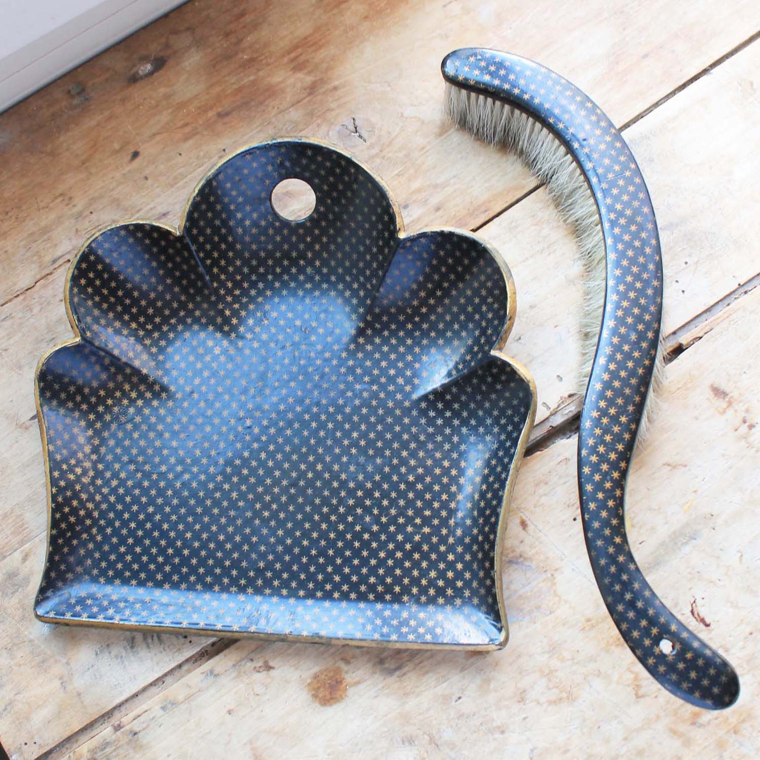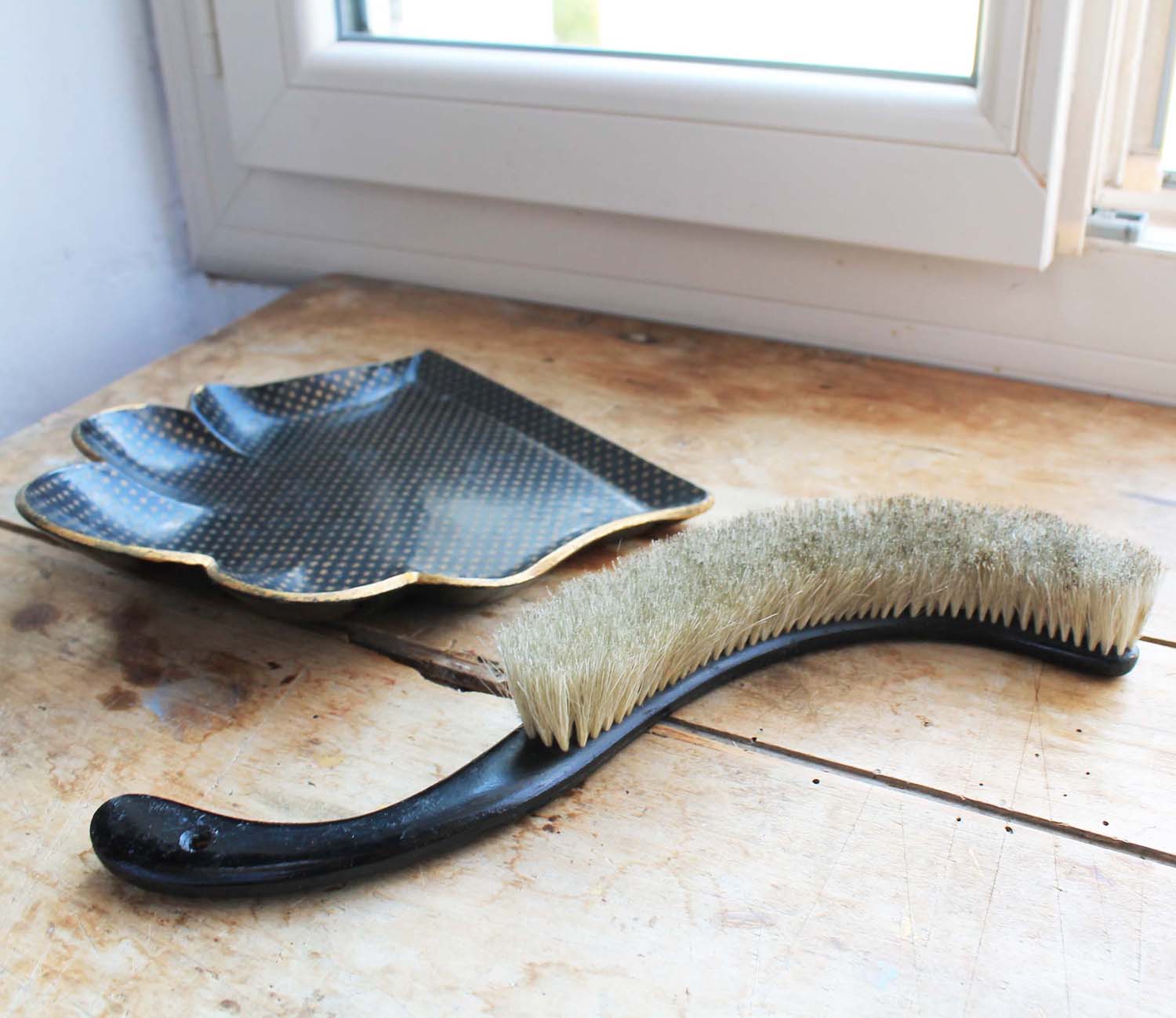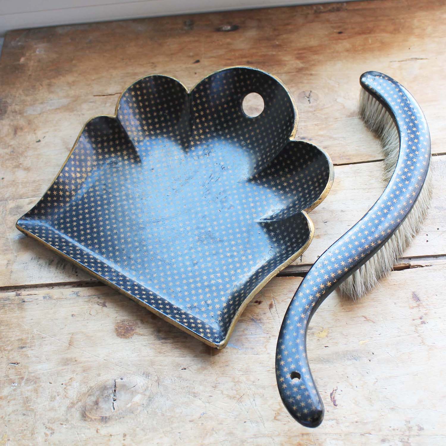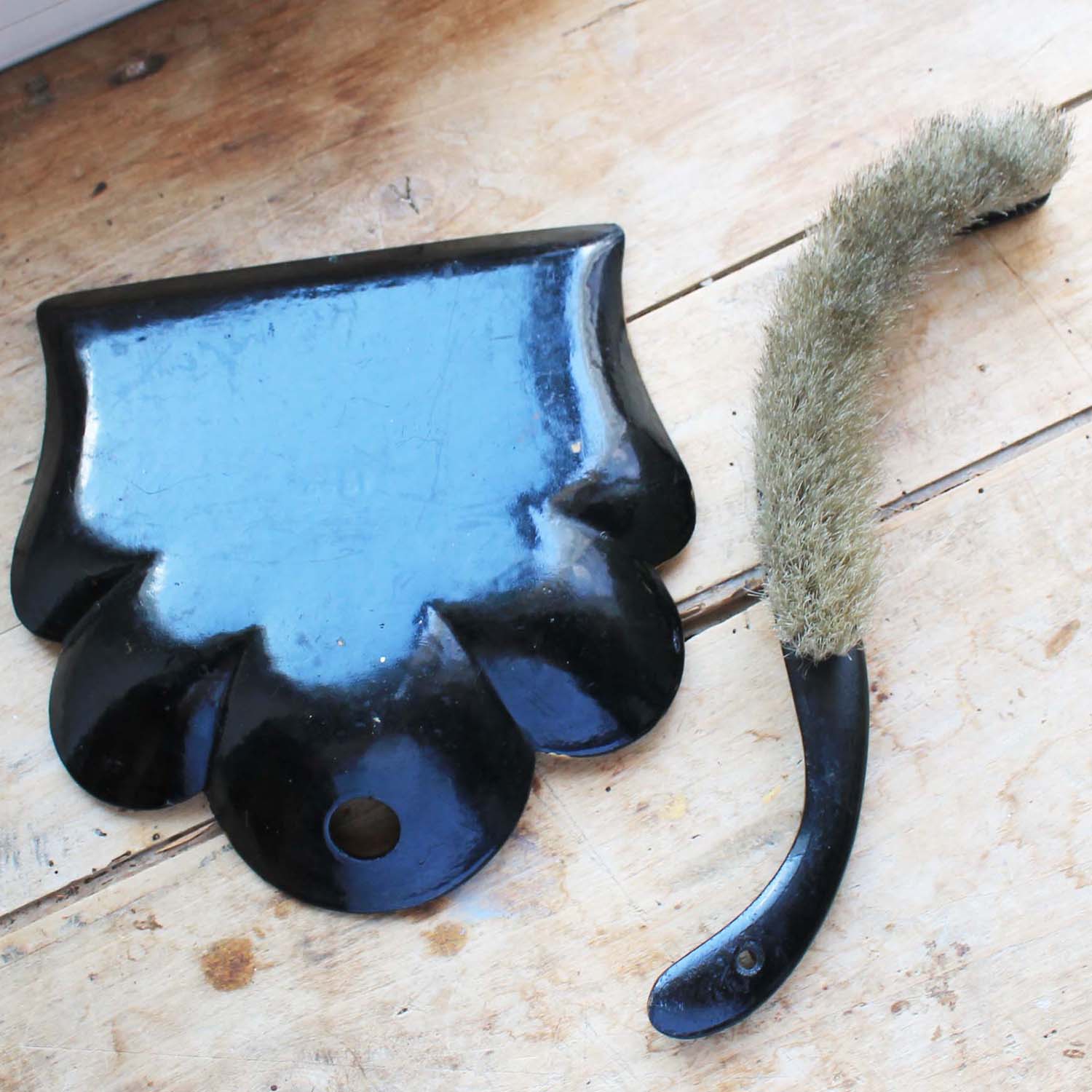 100年以上前の古いパピエマルシェ製の塵取り&ブラシ。古いものなので多少の汚れ、傷があります。