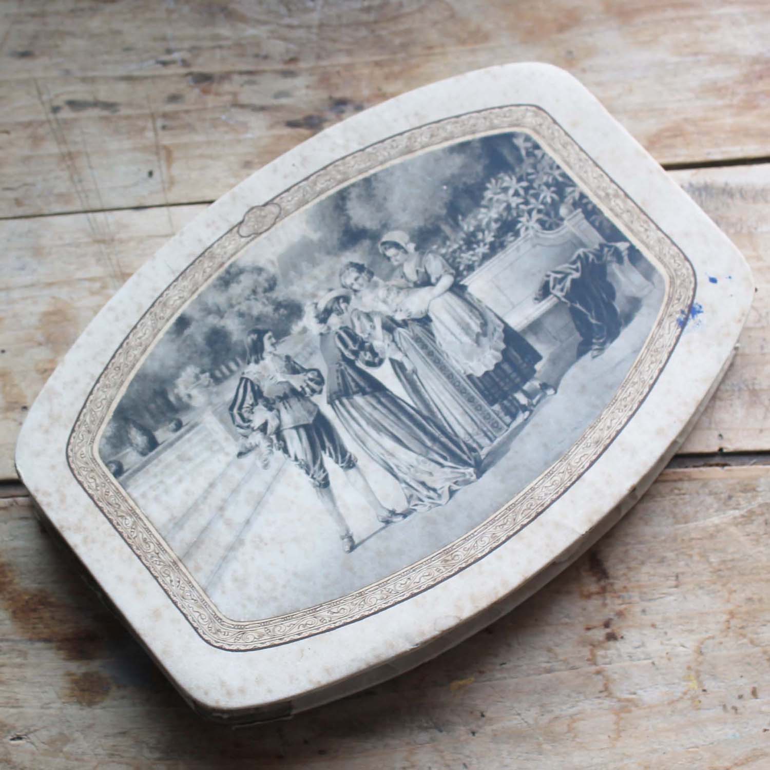 100年ぐらい前の古いドラジェの箱。古いものなので傷、汚れ、紙の切れがあります。