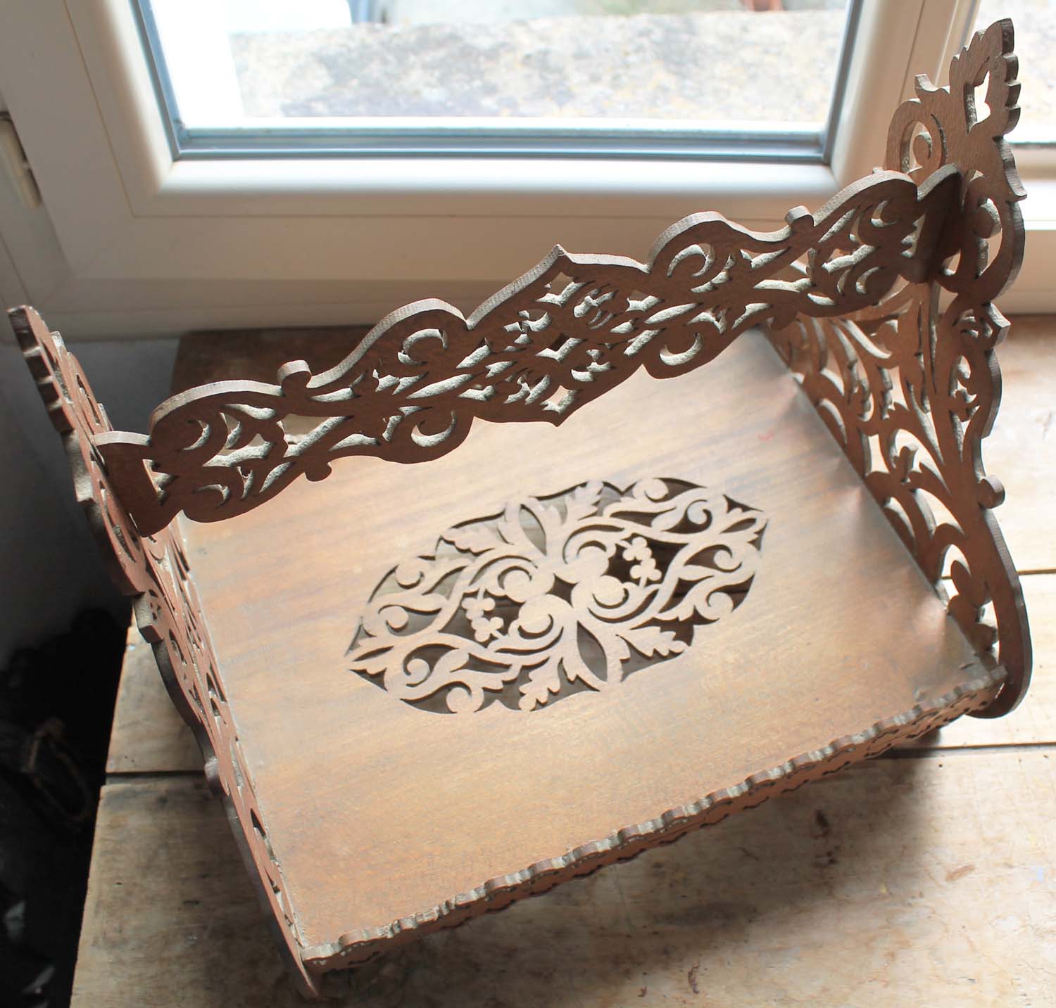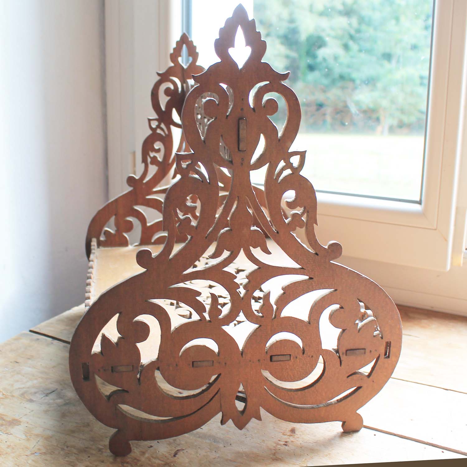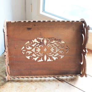 100年ぐらい前の古い木製の飾りスタンド。古いものなので傷、汚れ、木の割れがあります。
