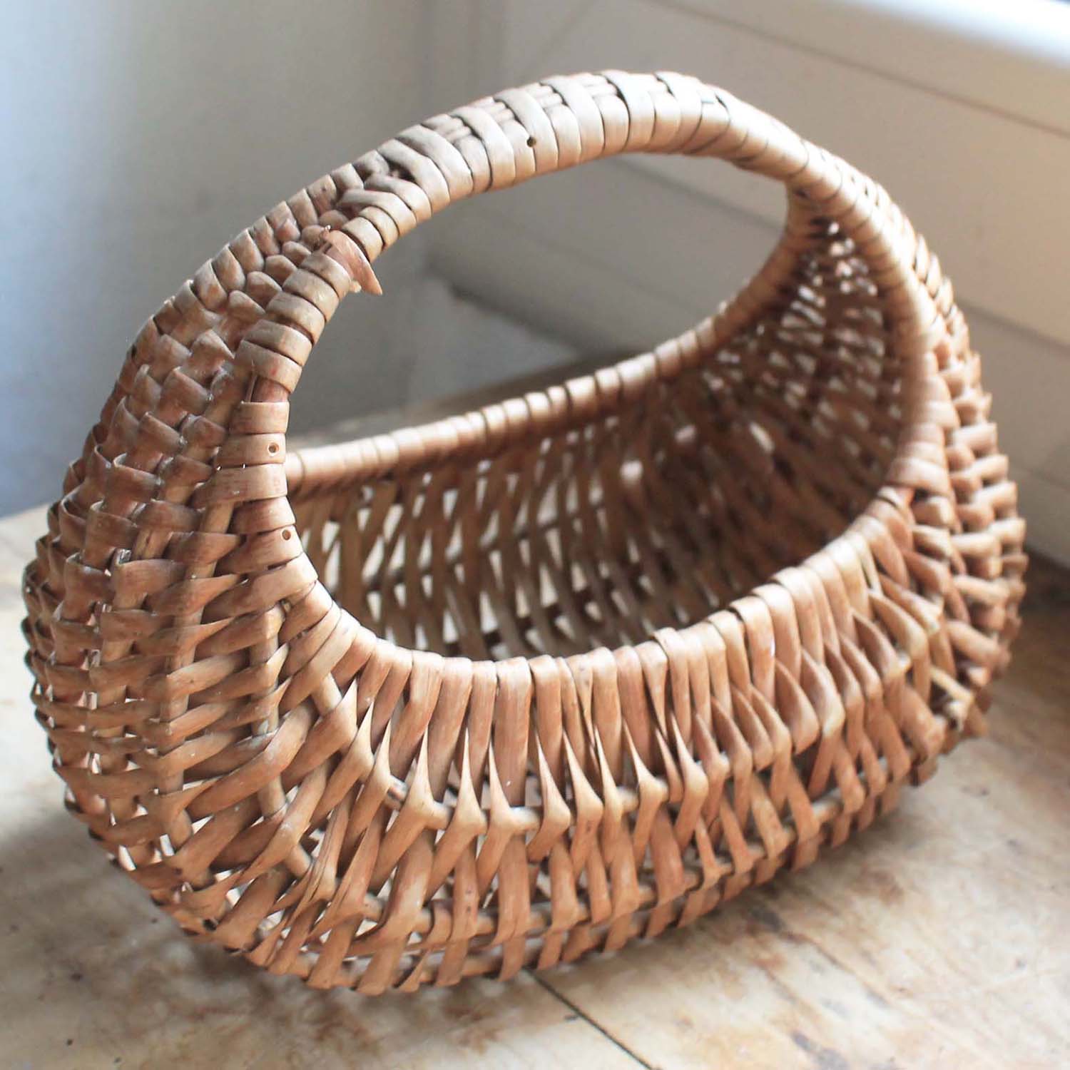 古い籐製のバッグ。とても小さいものです。古いものなので多少の傷、汚れ、籐の割れがあります。